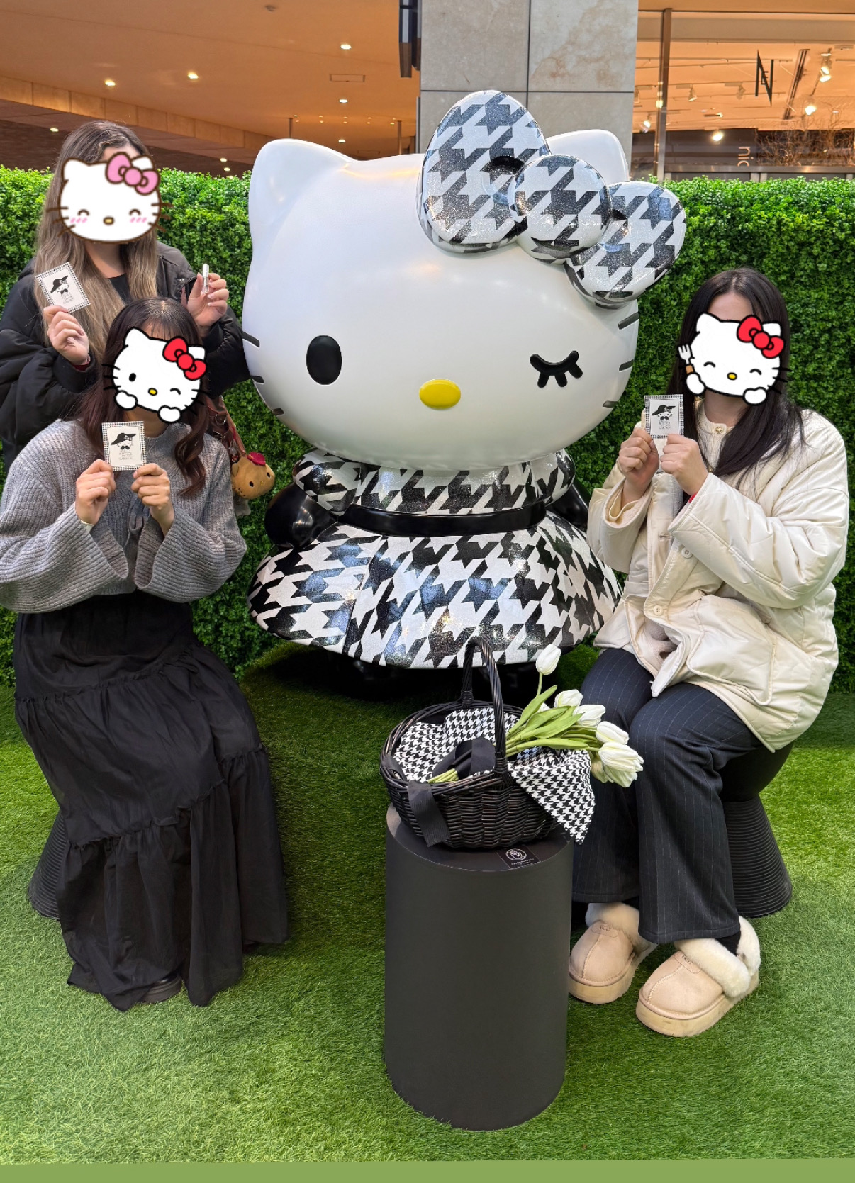 最高におしゃれで可愛い千鳥格子柄のキティちゃんと写真も撮れた!🥺