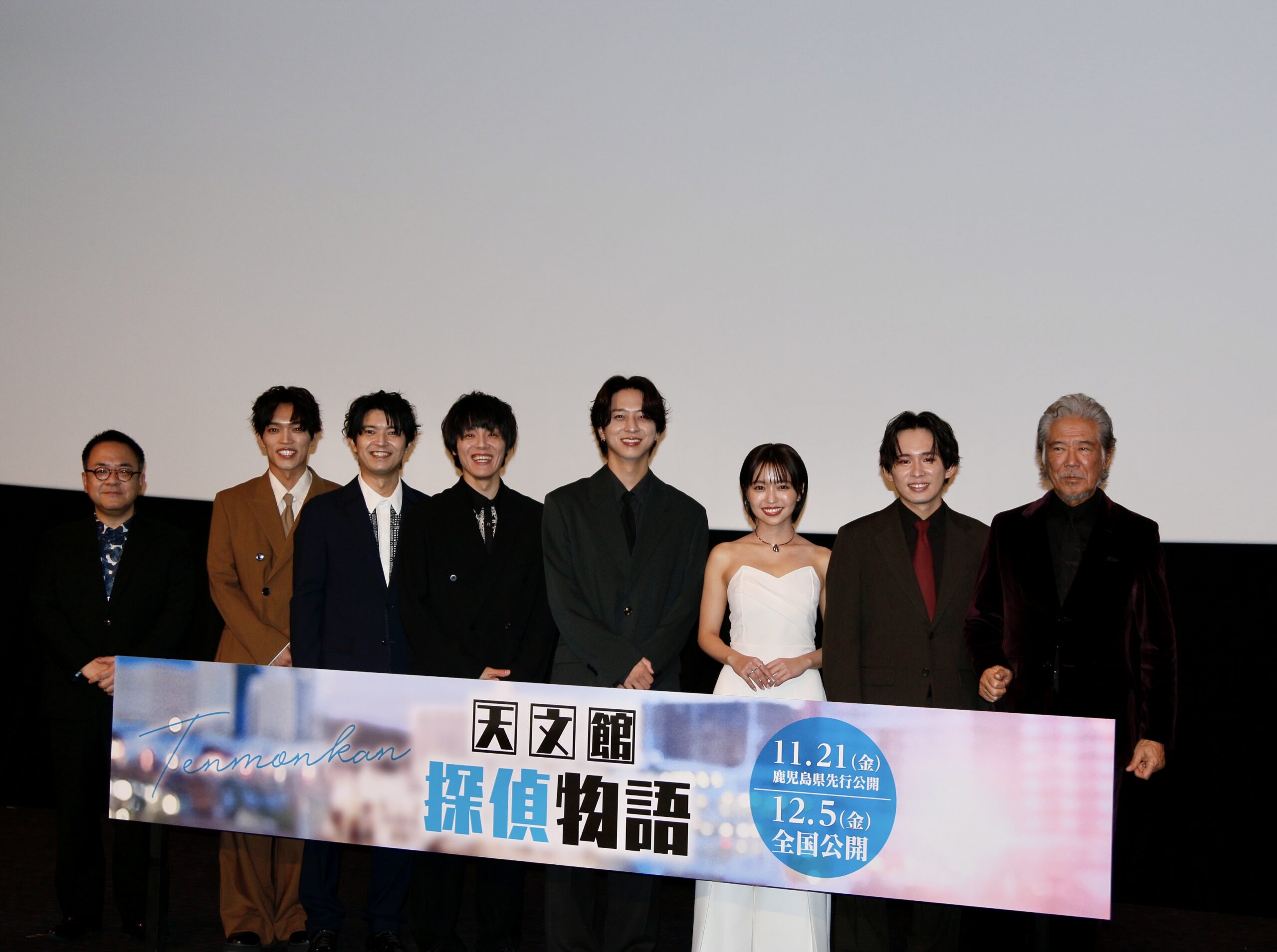 映画『天文館探偵物語』の完成披露試写会舞台挨拶が11月6日(木)に都内で行われ、映画初主演のtimelesz寺西拓人、そして大原優乃/肥後遼太郎/室龍太/高田翔/原嘉孝/西岡德馬といった豪華キャストと諸江亮監督が集結。