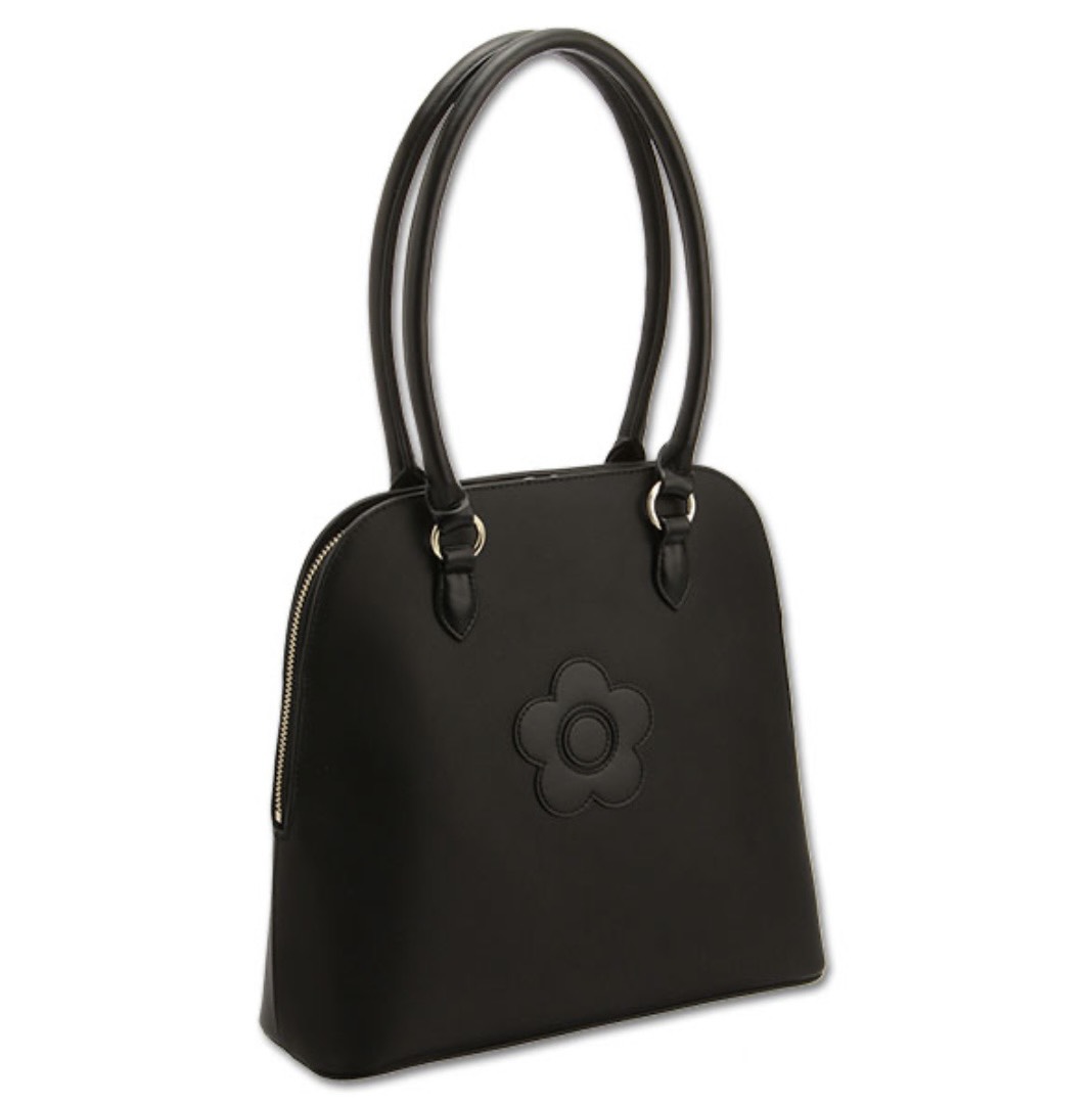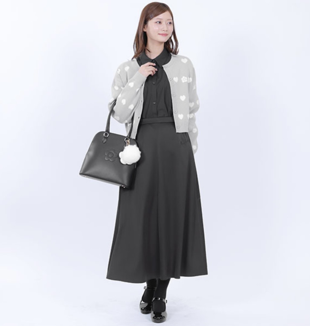 黒だから万能だし、デイジーがさりげなくて上品🖤写真みたいにワンピ×カーデのきれいめコーデぴったり!就活前のきちんとした日にも使えそう🙆🏻️🫶🏻