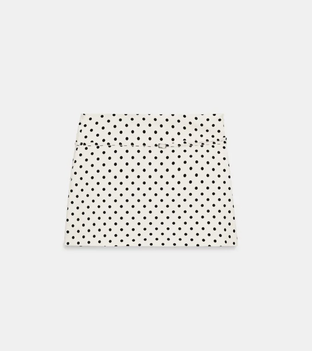 白ベースにドットが最高にマッチしているスカート!ベルト付きだから、少し背伸びしたレストランでのディナーなど、大人っぽい自分を演出するときに選ぶのもアリ🙆🏻