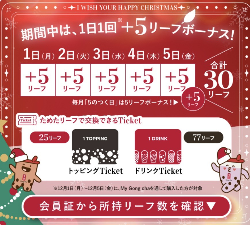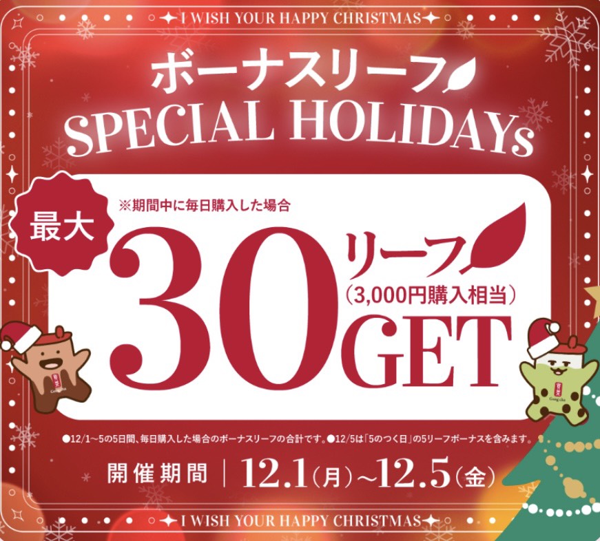 🎁 12/1〜12/5限定「ボーナスリーフ」キャンペーン!