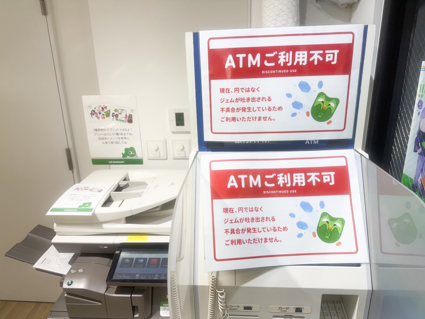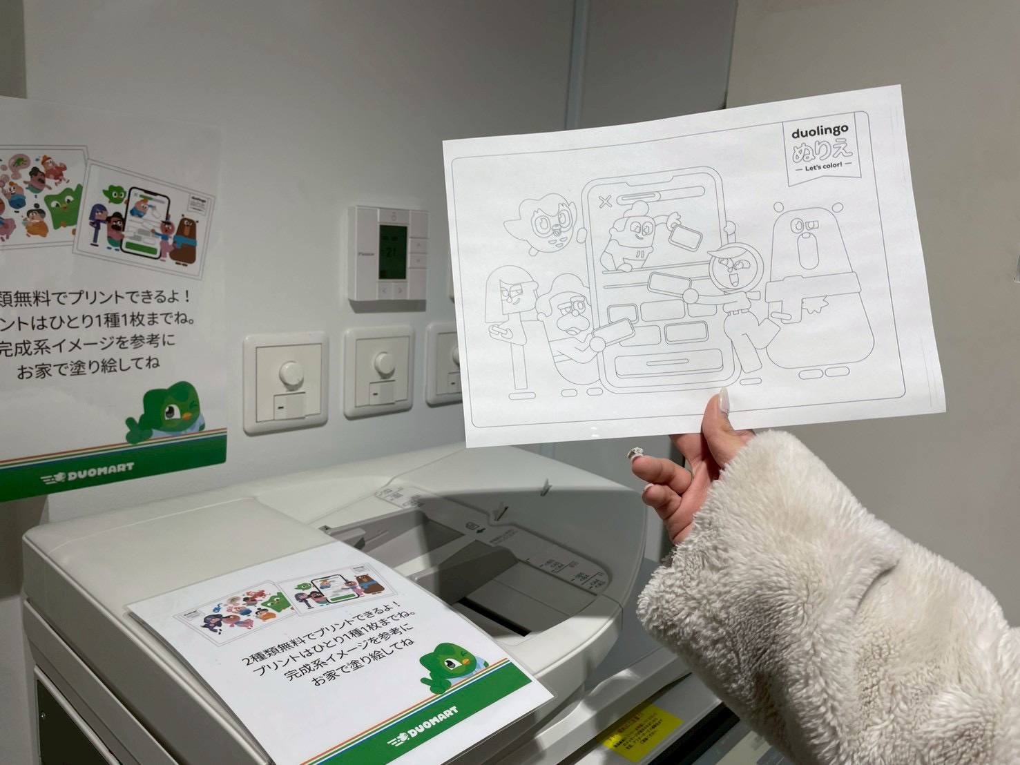 コンビニに来たような気分になれるこのコーナーにあるコピー機は無料で塗り絵を印刷できるよ✨デザインは2種類!duolingoをした後の息抜きにぴったり○