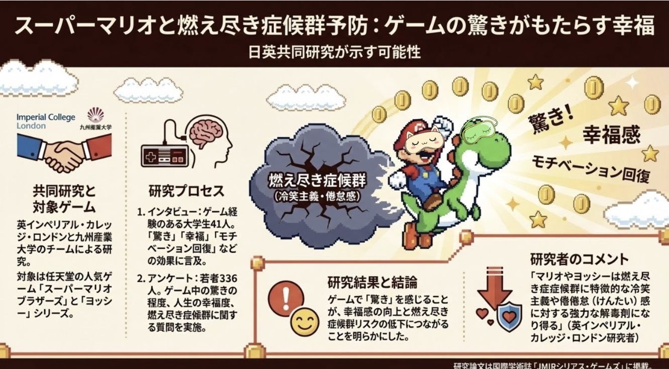 タイトル通り、燃え尽き症候群に「マリオ」が効くらしいという研究結果がでました!!