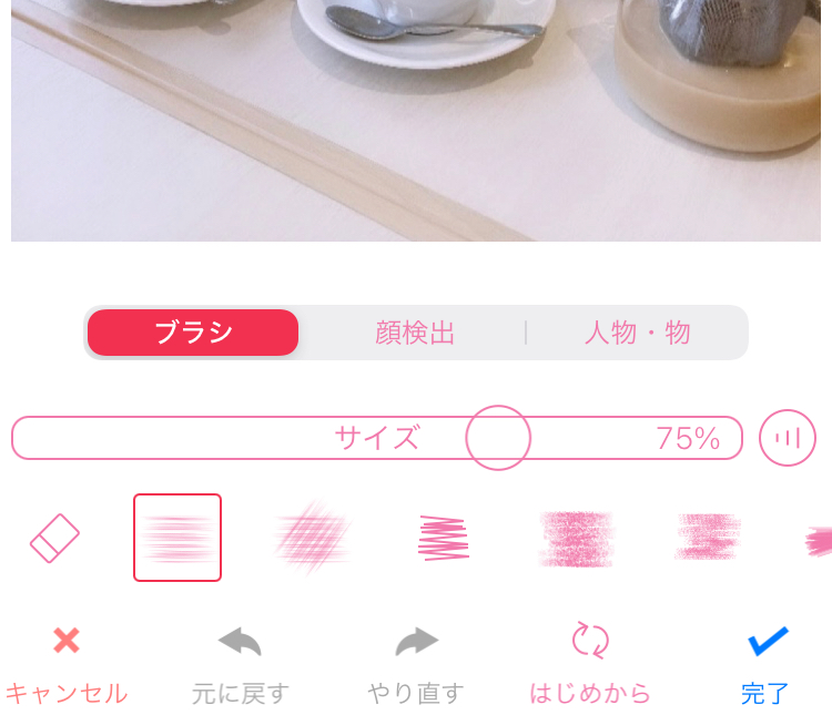 一旦ふわふわ度(?)の調節は無視して、モザイクをtap❕