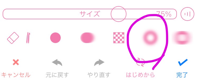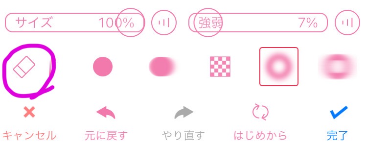 消しゴムタップしてなぞれば消えるよ!💘満足いく形になったら、下の完了は押さずにそのまま右上から保存!