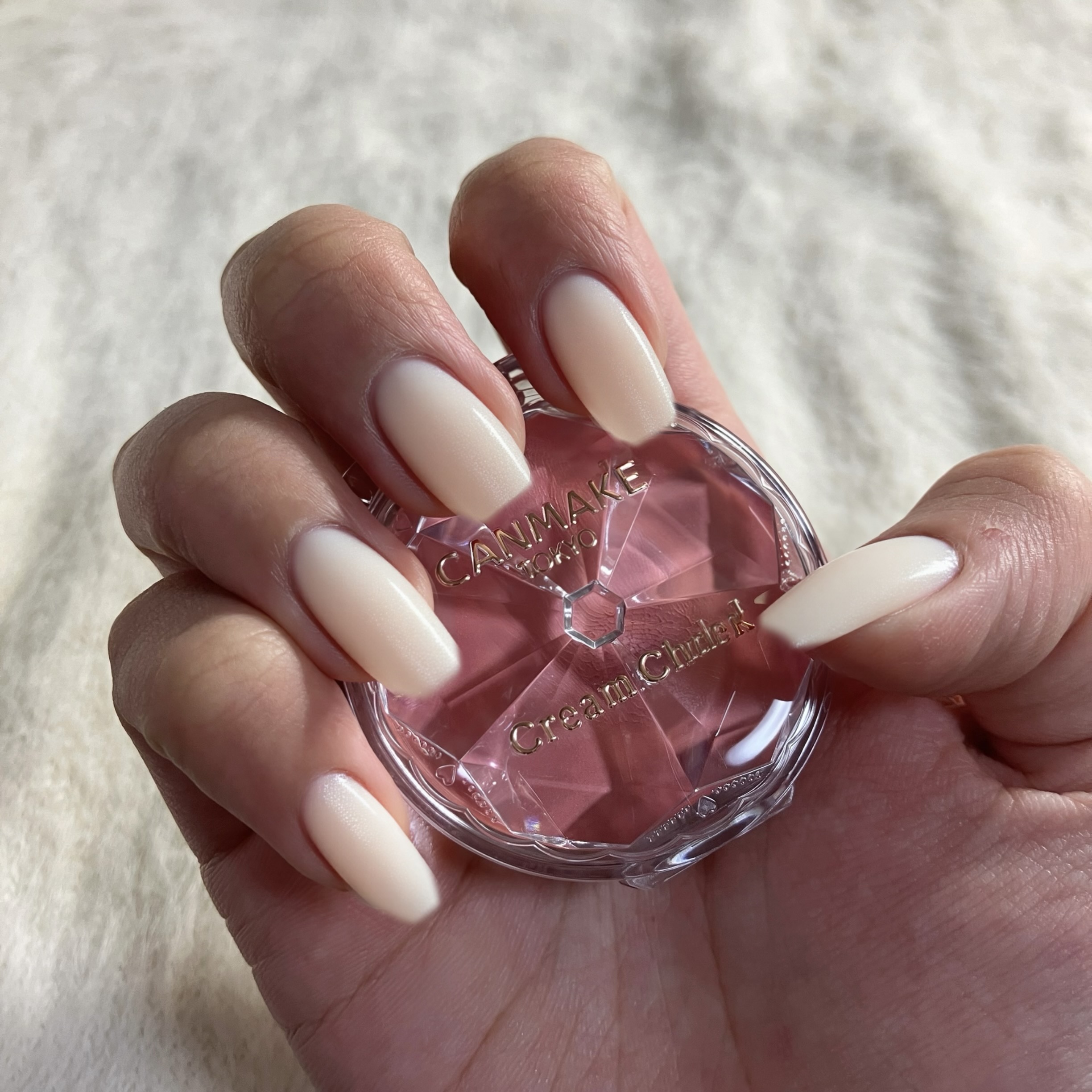 クリームチークってなんとなくベタつくイメージがあったのですが、これは肌に載せたらサラサラに変化するので全くベタつかなかった‼️