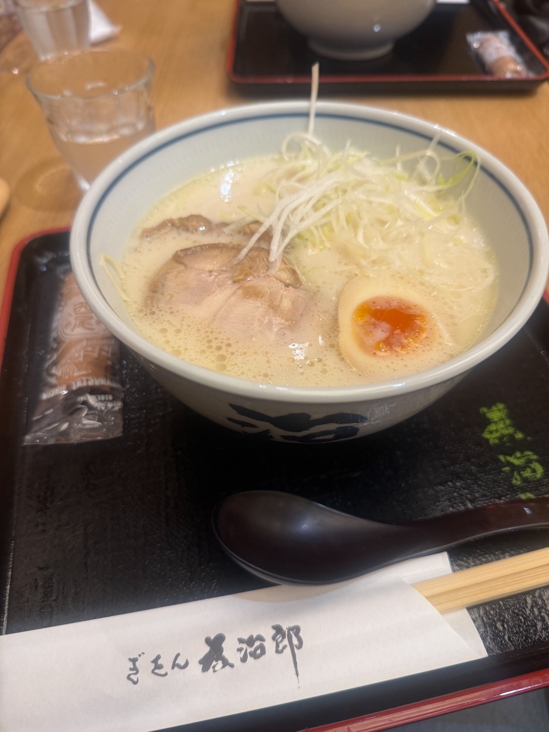 京都駅八条口からスグ!「ぎをん為次郎」は、京都土産の定番『西尾八ッ橋』提供する麵処なの🍜私が頼んだのは、鶏そば(白湯スープ)!濃厚なスープに細麺が絡んで、最高だったよ😋