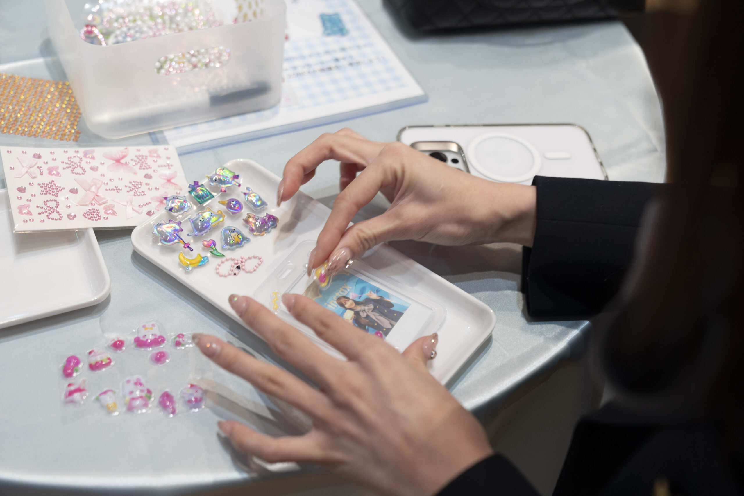 ZONE2ではトレンドの立体シールやラインストーンシールを使ってチェキ収納ケースをデコレーション💎✨チェキプリントがぴったり入るケースで、来場者の方はバッグやポーチなど好きな場所に身につけていたよ♡