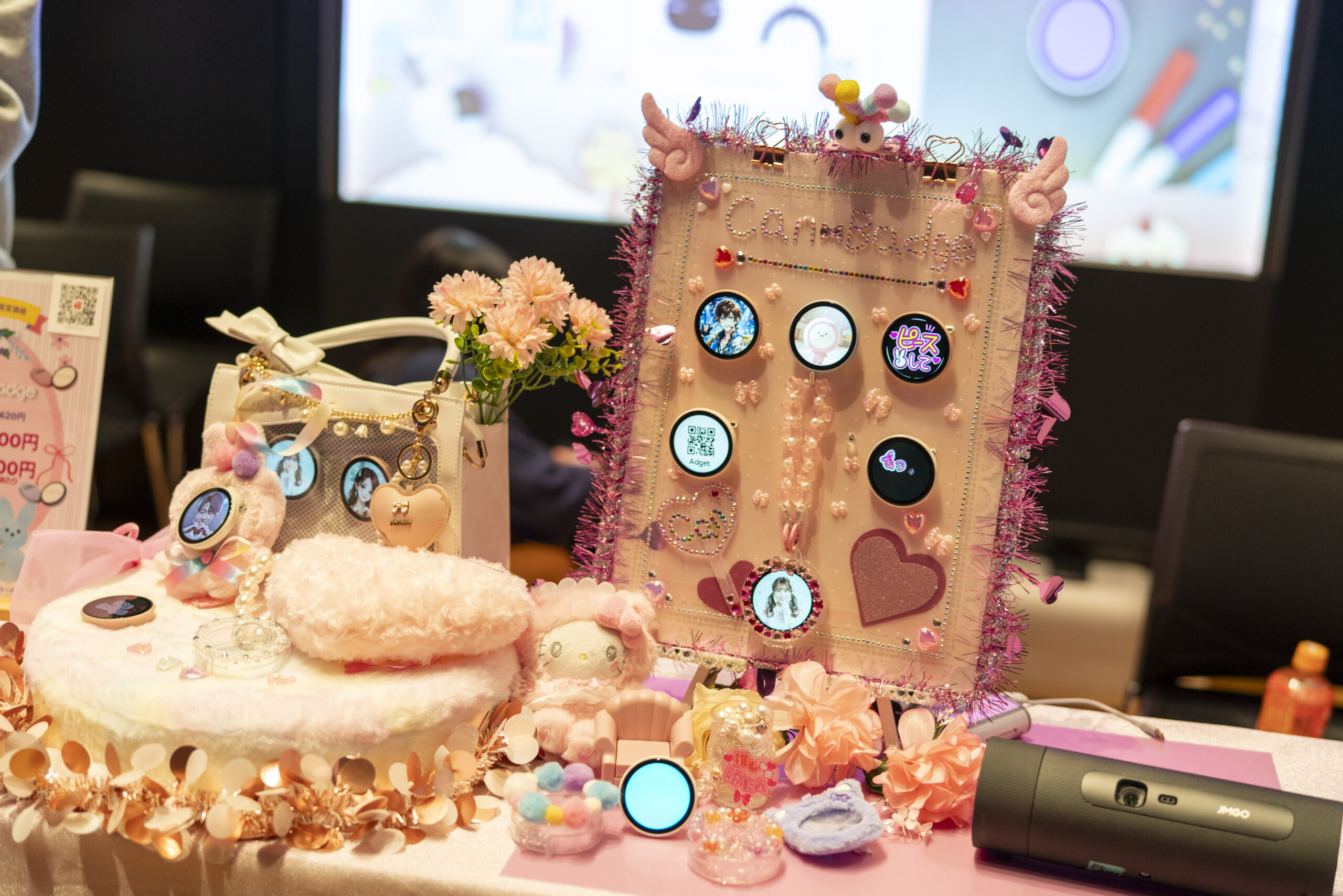 画像・動画・スライド再生OK、推し活をもっと楽しくする新感覚の次世代デジタル缶バッジ!?が当たるコーナー💚今までの缶バッジを超える、革命のアイテムを多くの来場者の方に触れてもらいました!