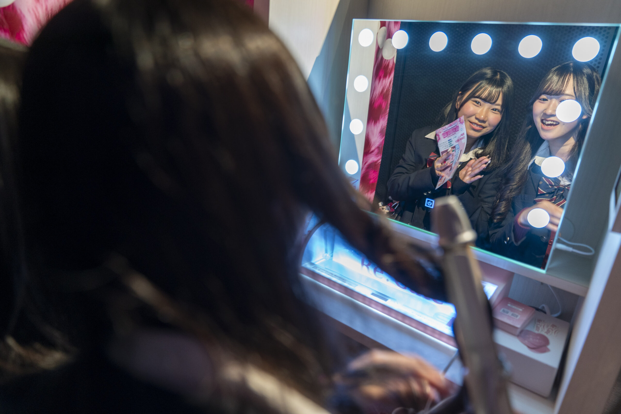 限定のカラコン装着液と装着液ケースをプレゼント!水色とピンクの組み合わせは、乙女心をくすぐる🩷🩵フォトスポットもあり、SNS映えもばっちり!
