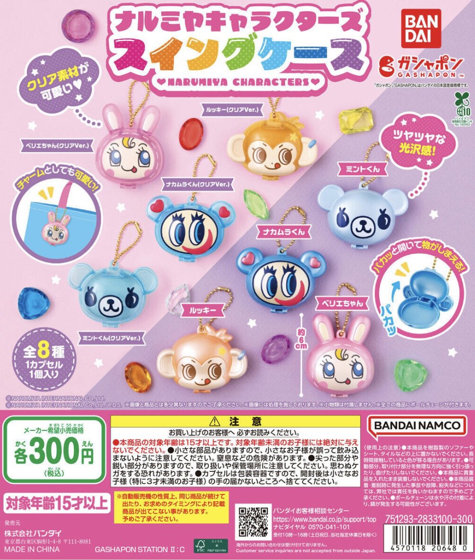 ナルミヤキャラクターズが大集合🩵飴や常備薬など、細々としたものを収納できるスイングケースがガチャガチャで登場!光沢シリーズとクリアシリーズの2種類があって、どっちも集めたくなる♥