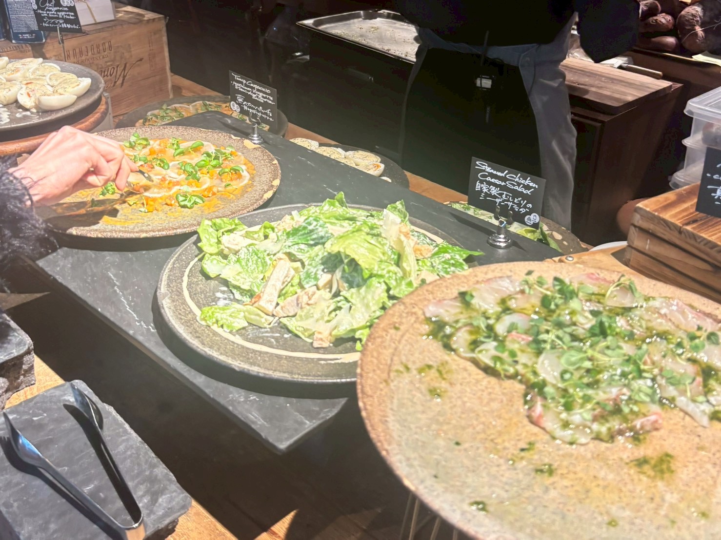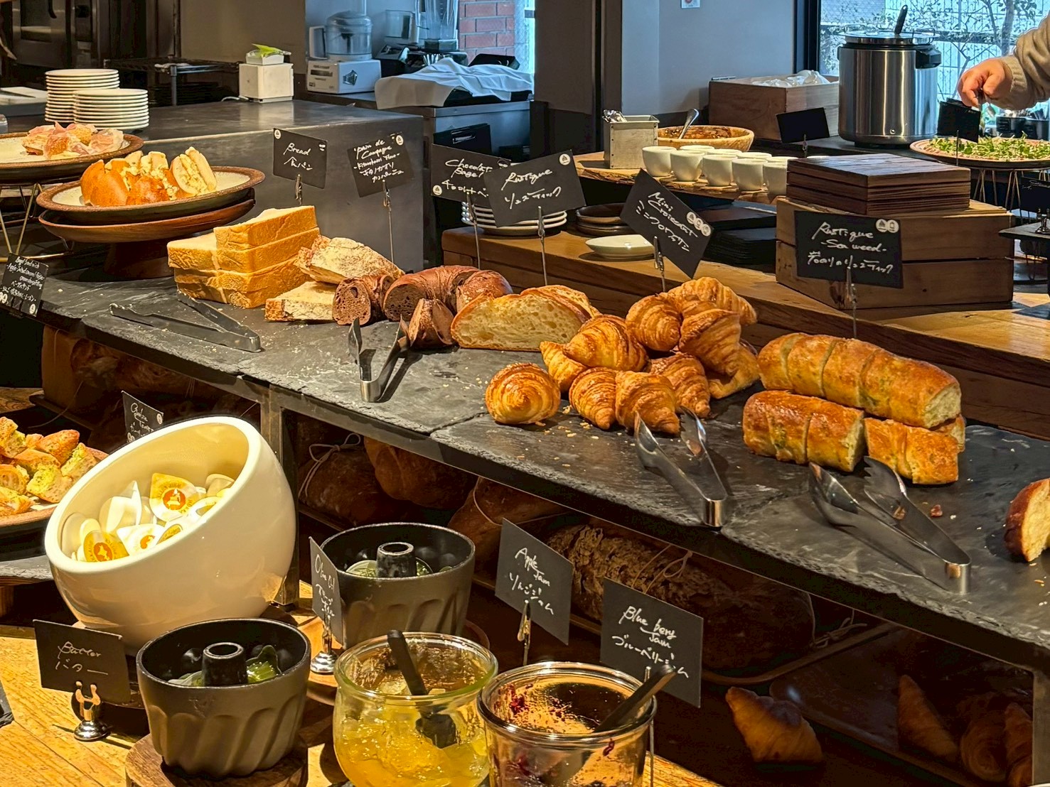 パンは併設のMORETHAN BAKERYで焼き上げられていて、素材にこだわったパンが食べれるのがとても魅力的!さらに生ハムやサラダなども食べ放題なので、どれから取ろうか迷ってしまうほどの種類の多さにワクワクします!ビュッフェ台も見やすく並べられていて、取りやすいのも嬉しいポイントです。