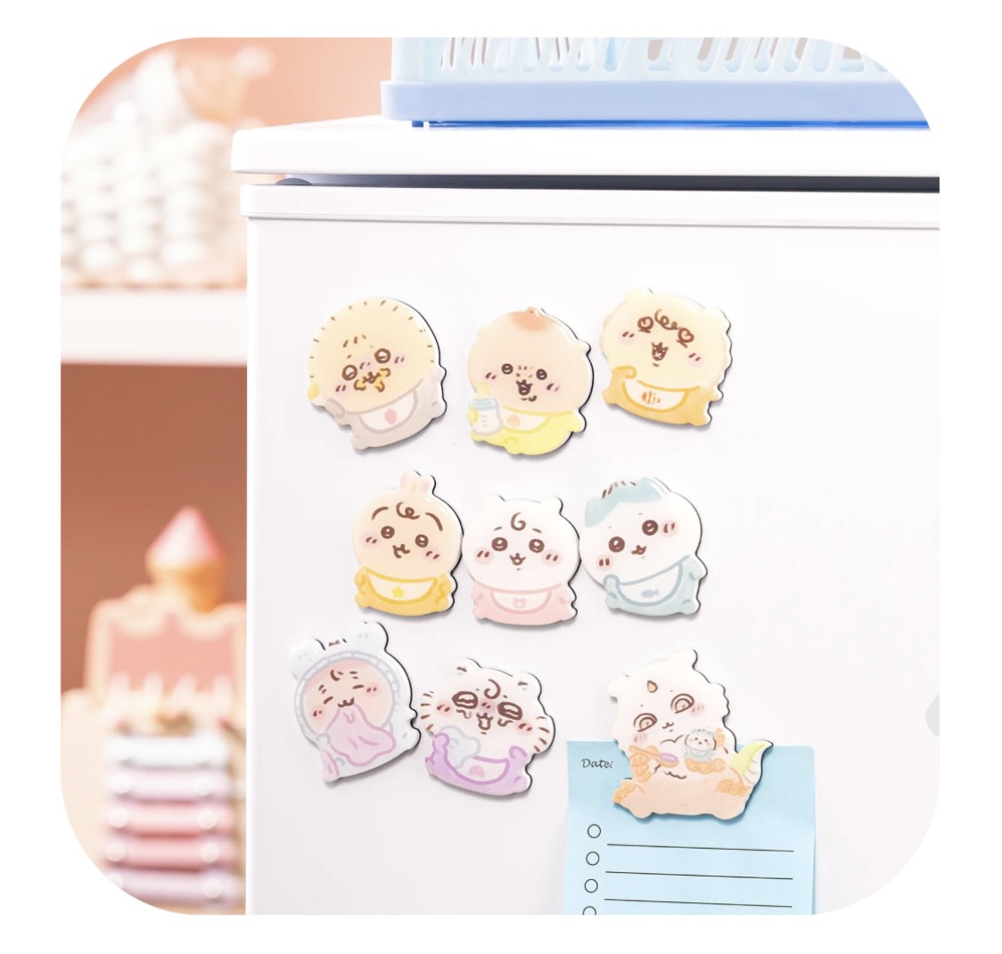 冷蔵庫やロッカーが一気にちいかわベビー空間に…🧊💗ついつい集めたくなるやつだよね~😳個人的には、泣き顔なモモンガちゃんが気になる♡