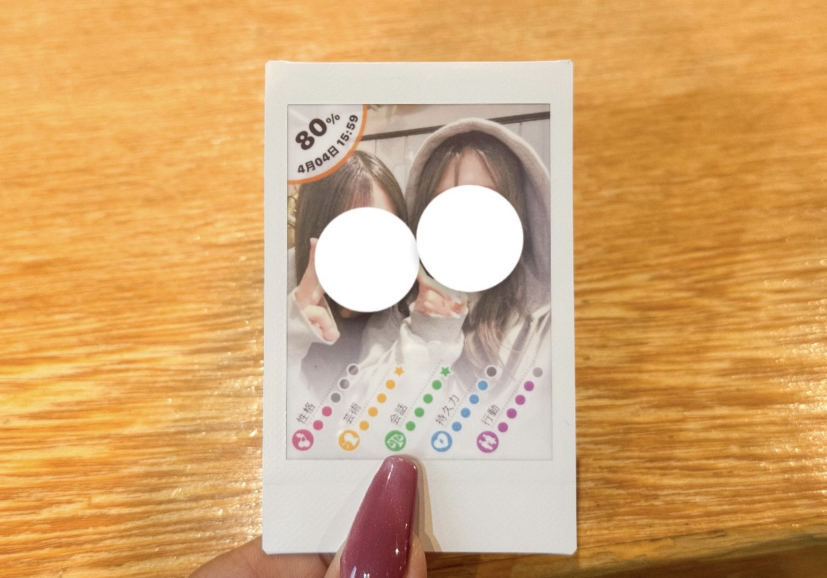 なんと80パーセント!性格や会話など、カテゴリー別に数値が見られるから大盛り上がり👌🏻2人はもっと上げたい!!と向上心を燃やして何回も撮っていたよ😎