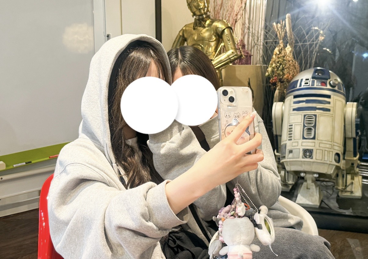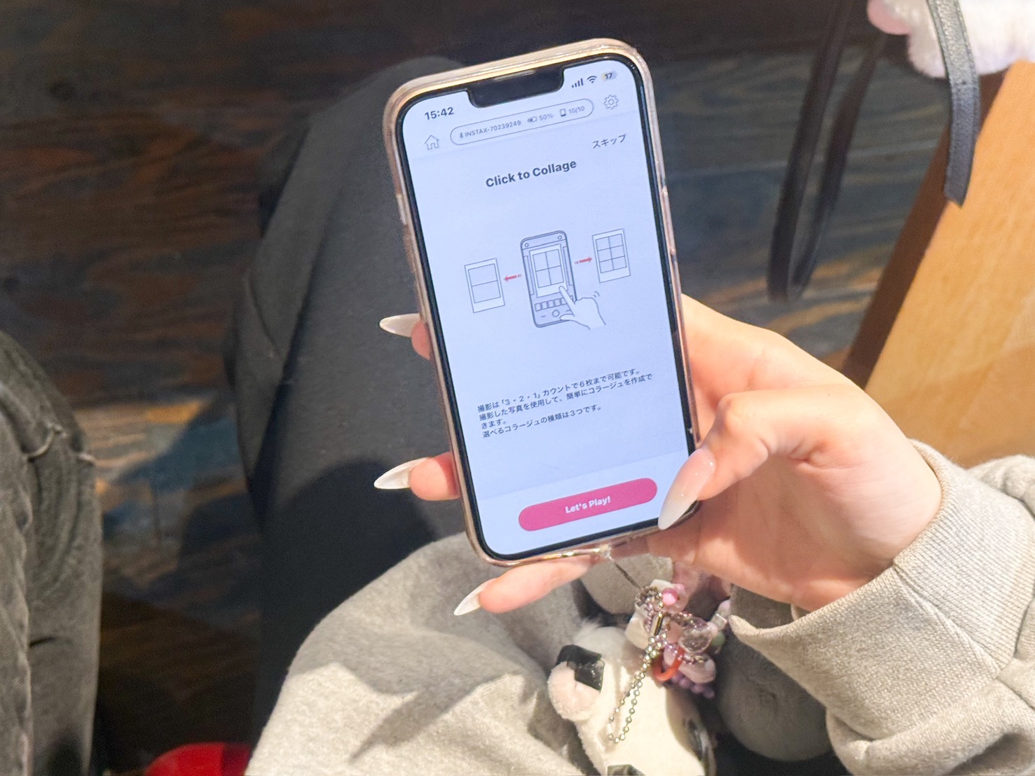 そして!こちらは、3秒のカウントで連続的に6ショット撮ることができる「Click to Colage」!次どんなポーズ撮る?って相談しながらワイワイ撮っていた2人🫰🏻❤
