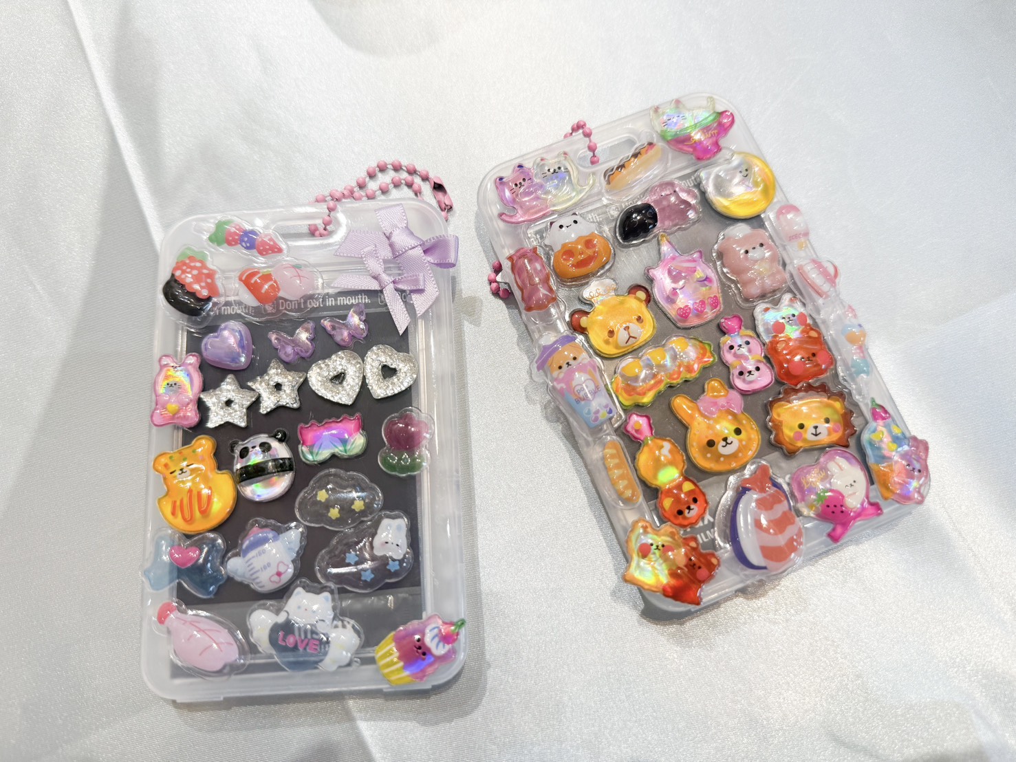 スマホの画像をチェキプリント™にしたら、収納ケースをデコっていくよ~!今、トレンドの立体シールの登場に2人共大喜び🙌🏻💥どこに貼ろうかな?何を貼ろうかな?と、普段はなかなかする機会がないワークショップは、新鮮で、いつもはチェキプリント™にしたらお家で飾っているけど、鞄につけて今日は帰る!🏃🏻♀️と新感覚なたのしみ方に出会っていたよ!