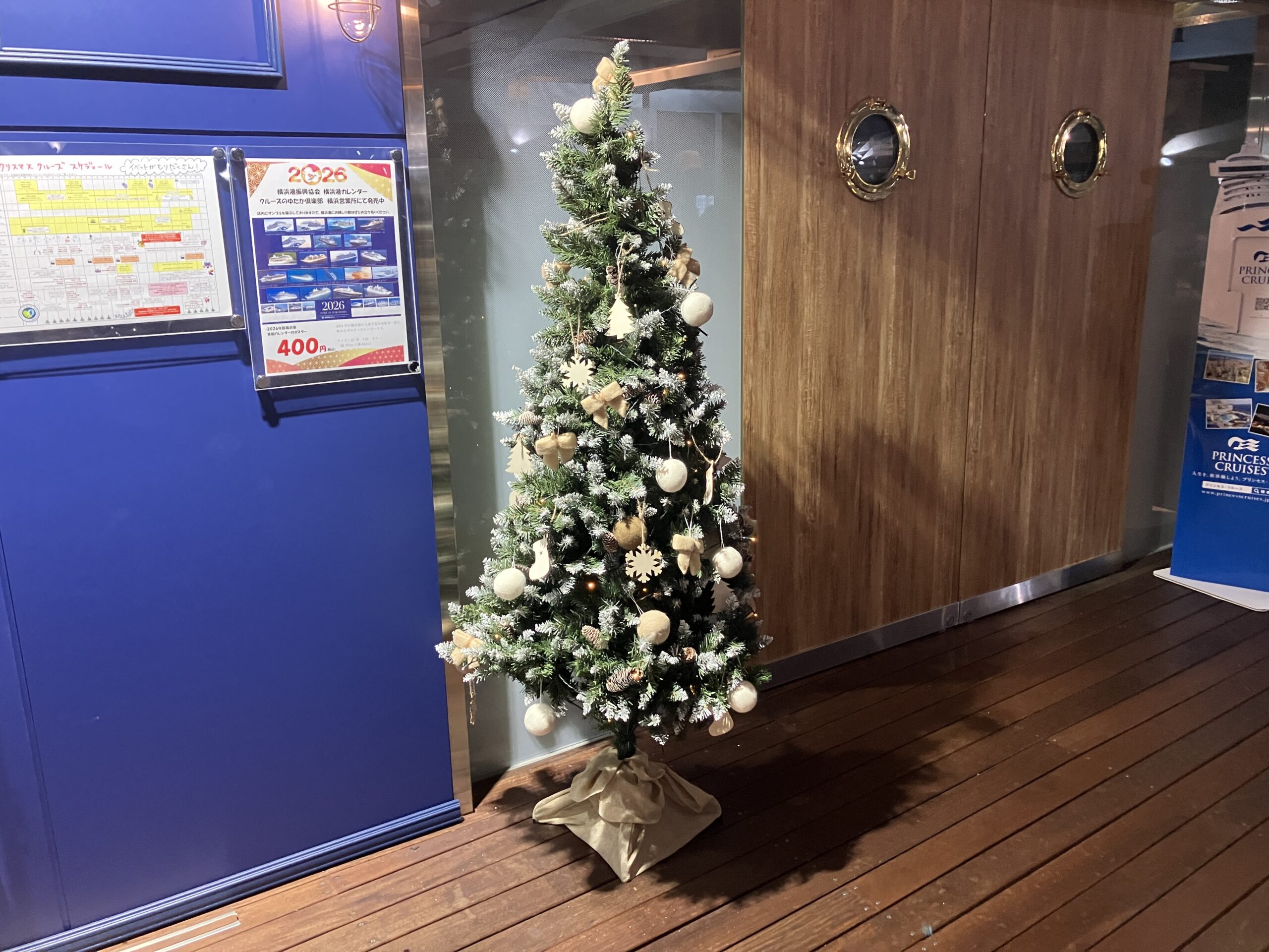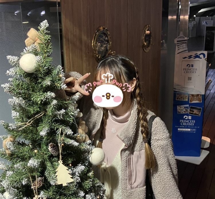 早めに入場したので待ち時間があったよ!空港みたいに椅子があって、座って待てるようになってた🎶クリスマスツリーあって冬感じた🎵