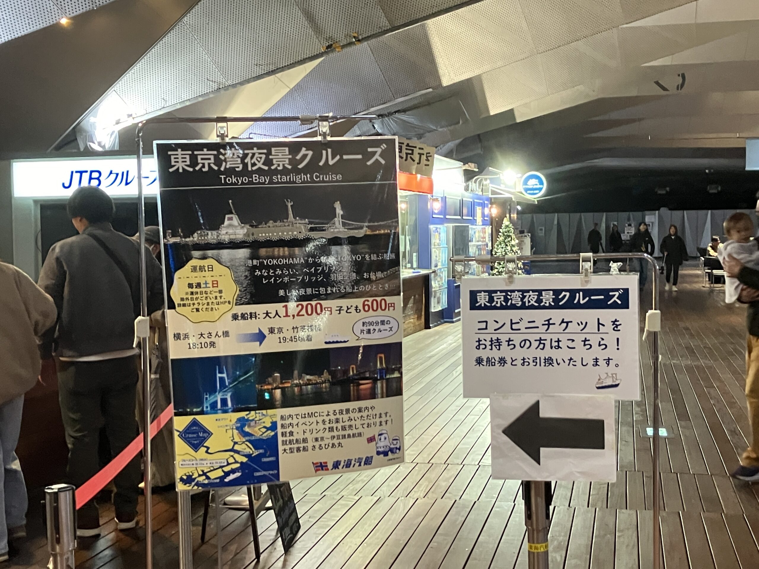 夜景クルージングということで、18時10分発の船だったので5時くらいについたよ!(16時~17時40分までに入場しなきゃいけなかった!)
