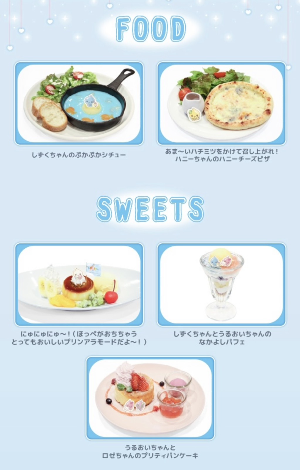 ベビーデザインのしずくちゃんたちが登場して、フード・スイーツ・ドリンク・グッズまで全部しずくちゃん尽くしなの♡