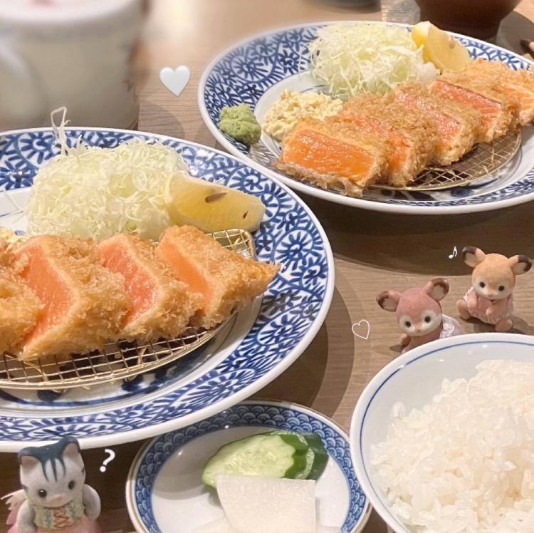 サーモンレアカツは美味しすぎて一瞬で食べ終わるし、ご飯がおかわり自由なのも嬉しいポイント🙂↕️💕サーモンレアカツ定食はご飯おかわり自由で2000円行かないくらいなのでコスパいい‼️