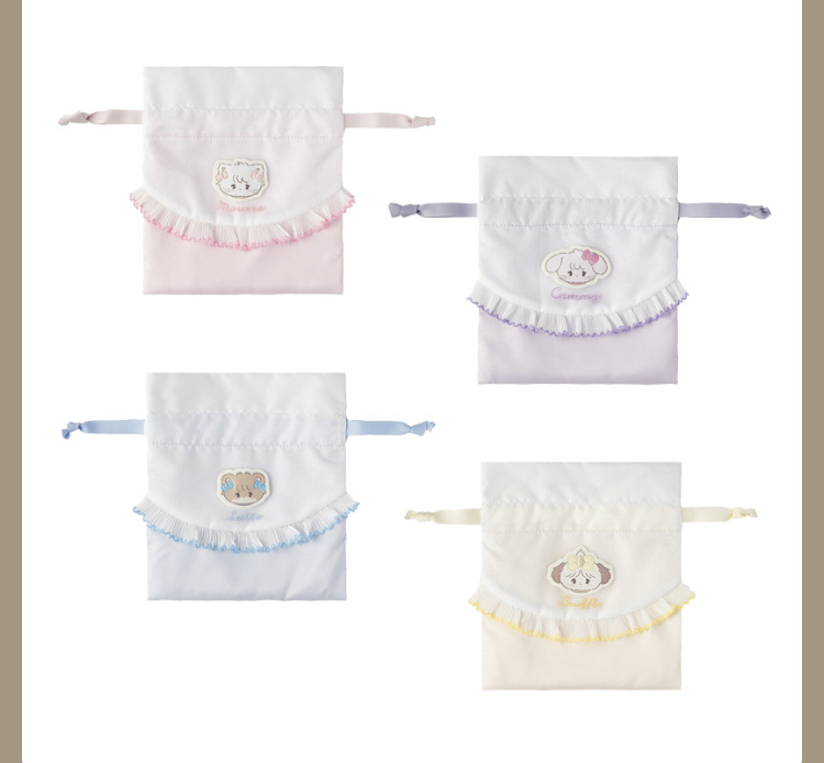 レースアップになってるフリル巾着💘赤ちゃんのお洋服みたいで他には無いデザインでかわいすぎる🥹💝💝