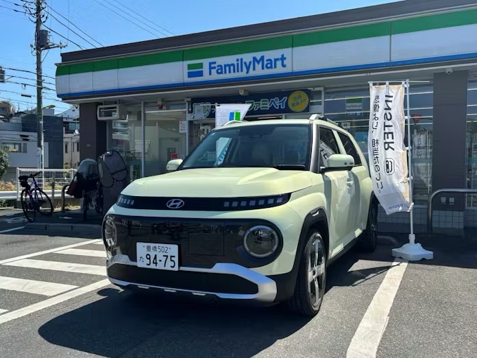 ファミリーマートが、店舗の駐車場を使って新車を展示する新しい取り組みを始めるよ〜!