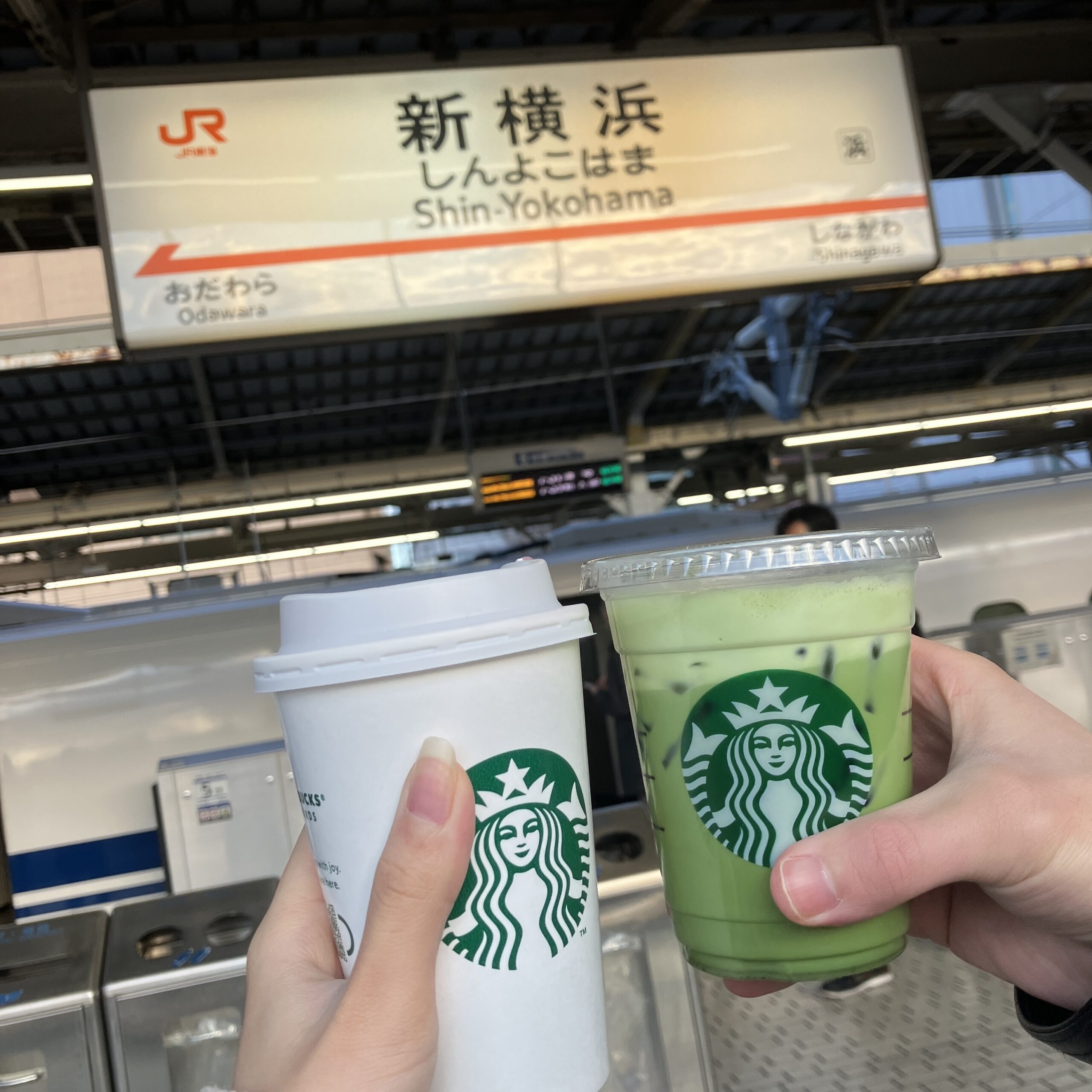 新横浜の新幹線乗り場の1個上の階のスタバでスタバを調達☺️💖