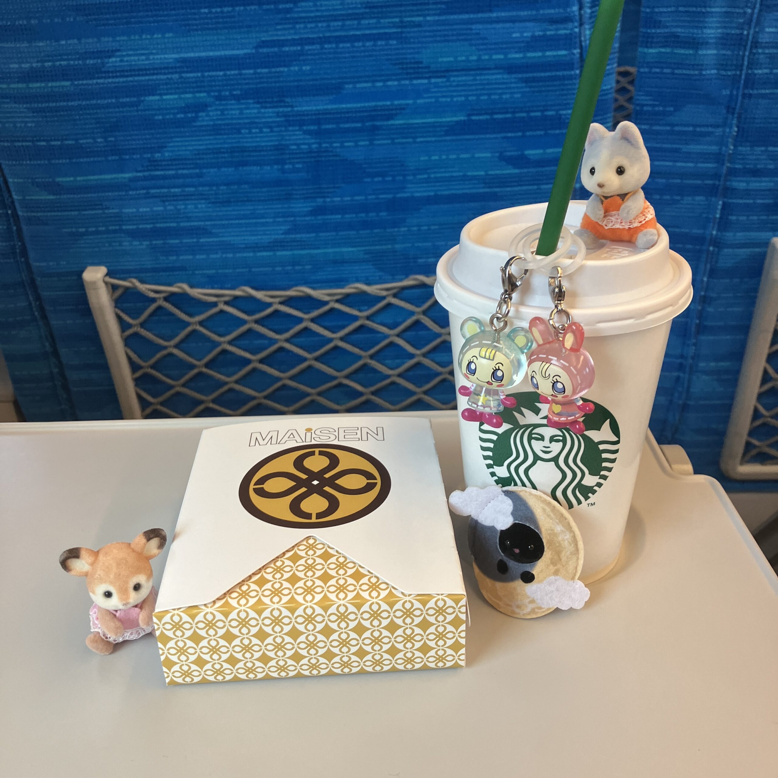 シルバニアとお気に入りのめじるしアクセサリーでホビ垢っぽいフォトも撮った📸♡新幹線、飛行機とか移動中の写真ガチ勢笑笑笑