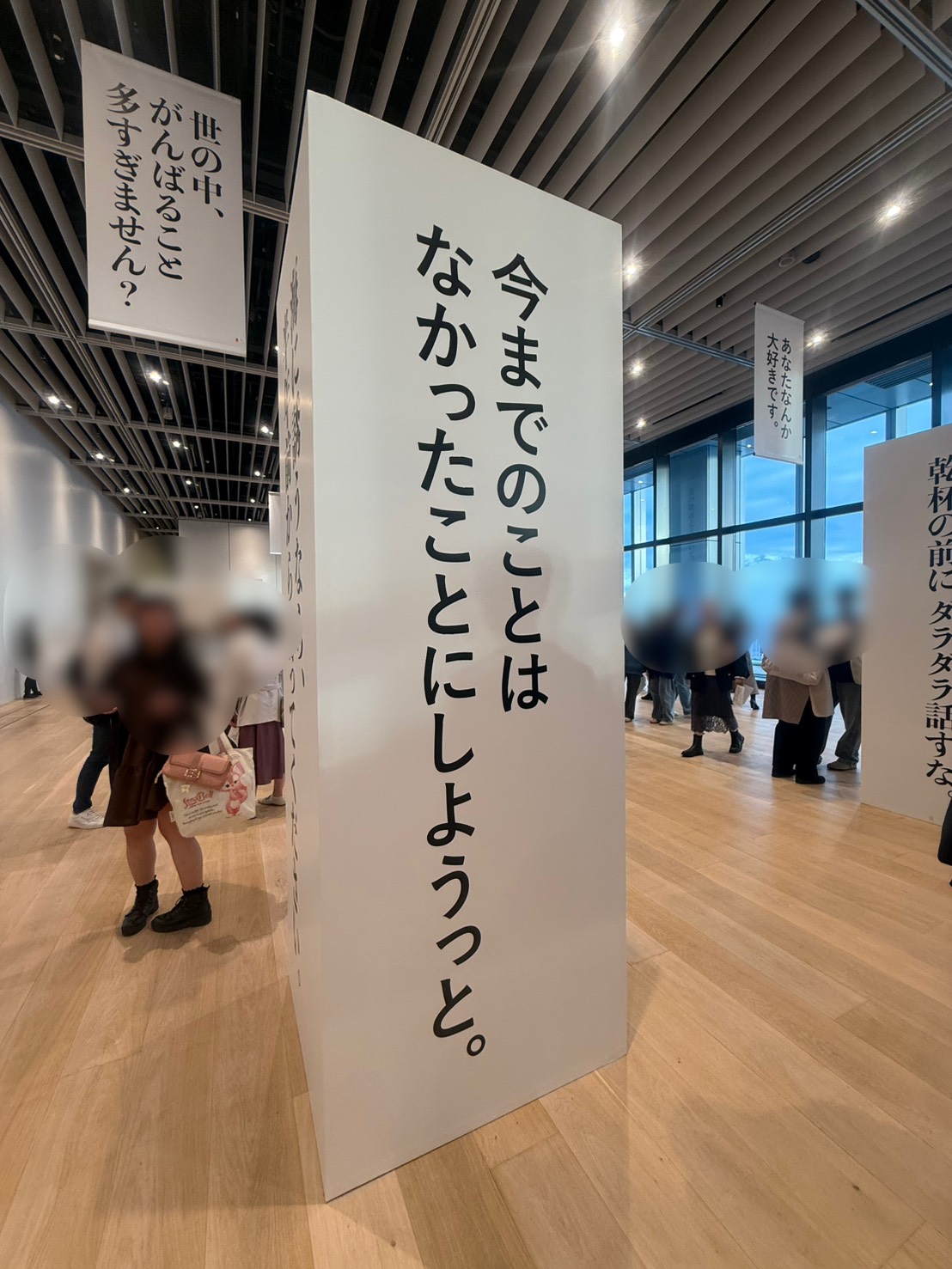 画像にあるとおり、ここで飾られている言葉たちは実際に何かを彩るために生まれてきた言葉だけ!広告に使われたことがある言葉なの。だから見覚えのある言葉もあって、改めて言葉が与えるパワーのおおきさに感銘を受けたよ🫣💥