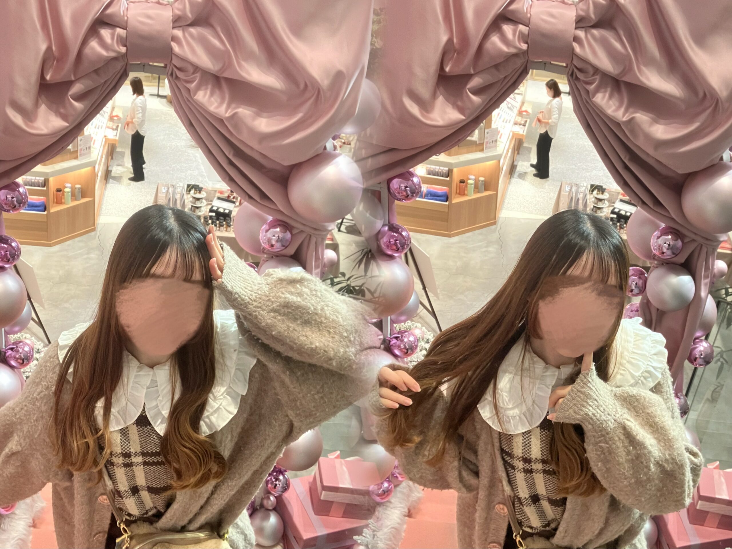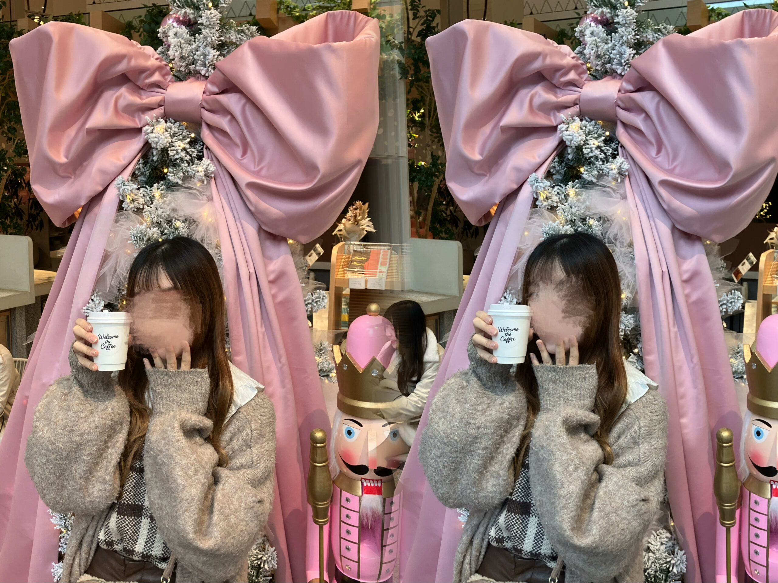 右⇒ドリンクを持ってツリーの正面で撮影したよ💖