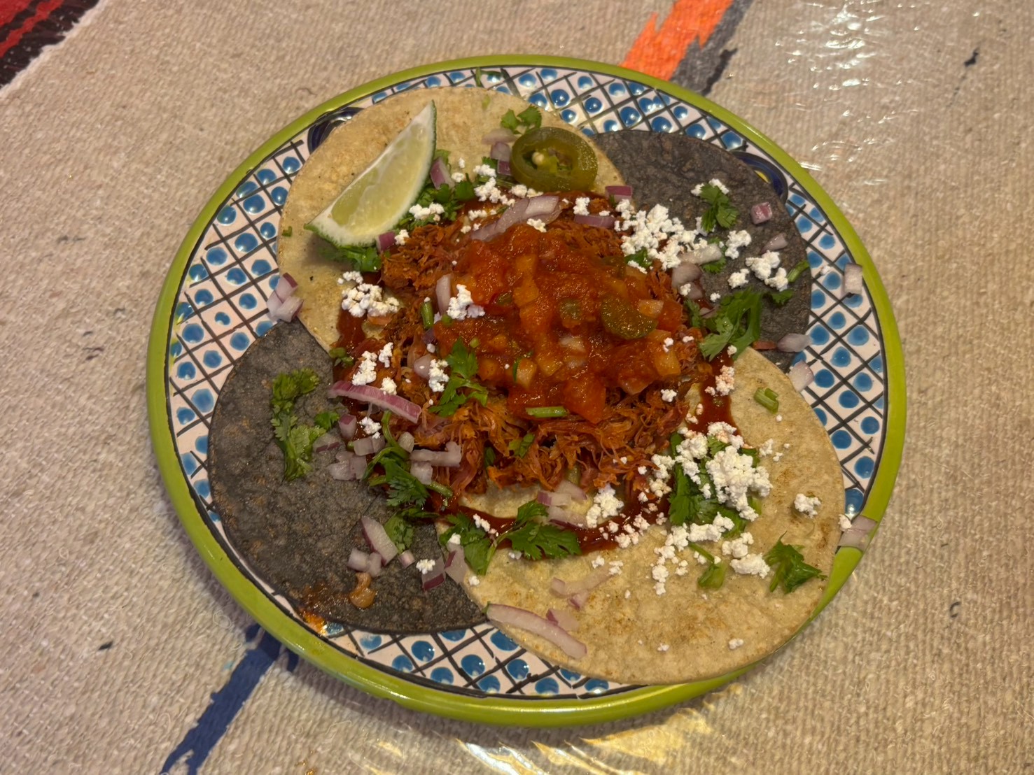 特にカカオ香るチキンタコスがおすすめです!口に入れた時の香りがとてもよくパクチーなどのアクセントも効いていて最後の一口まで楽しめる一品です🌿