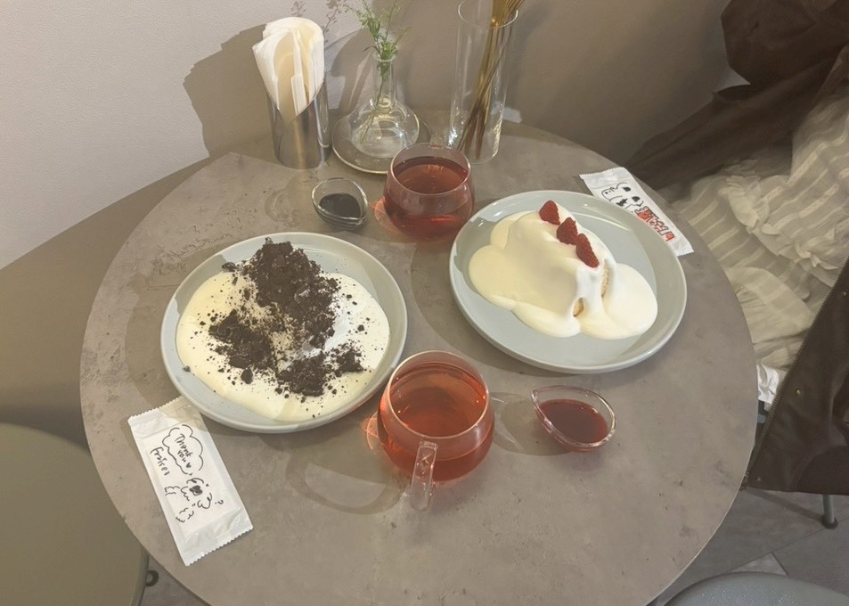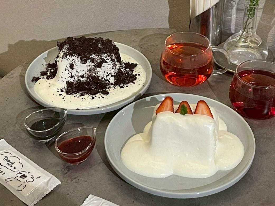 今回注文したのはこちらの2品✨とろける苺のシフォンケーキとクッキーシフォン。生クリームが全然重くなくて、口当たりが軽いのでぺろっと食べられます!ふわふわのシフォンと甘酸っぱい苺の組み合わせが絶妙で、最後まで飽きずに楽しめました。写真映えはもちろん、ソースをかける瞬間は動画を撮りたくなる可愛さです📸