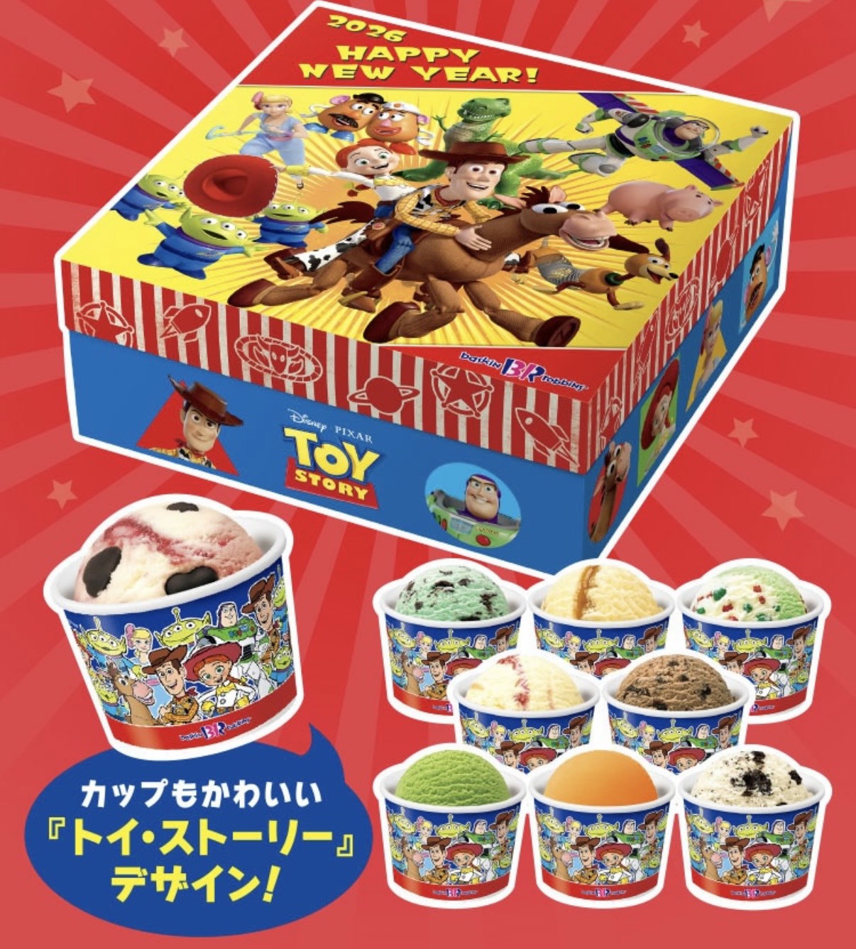 サーティワン × トイ・ストーリーが2026年1月1日(木)〜スタートするよ〜🎍💛 新年早々、これは神コラボすぎる…!!🥹💥