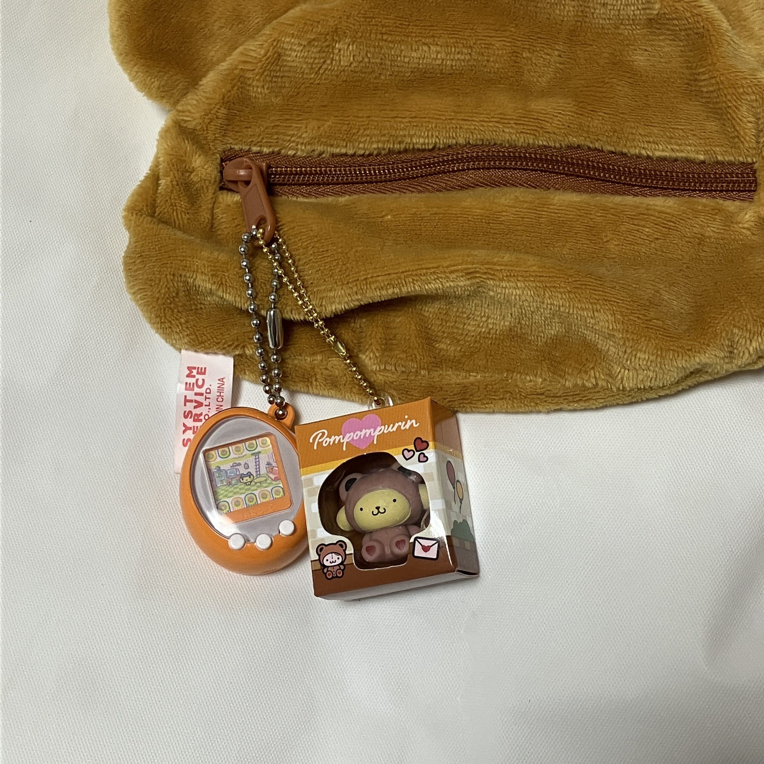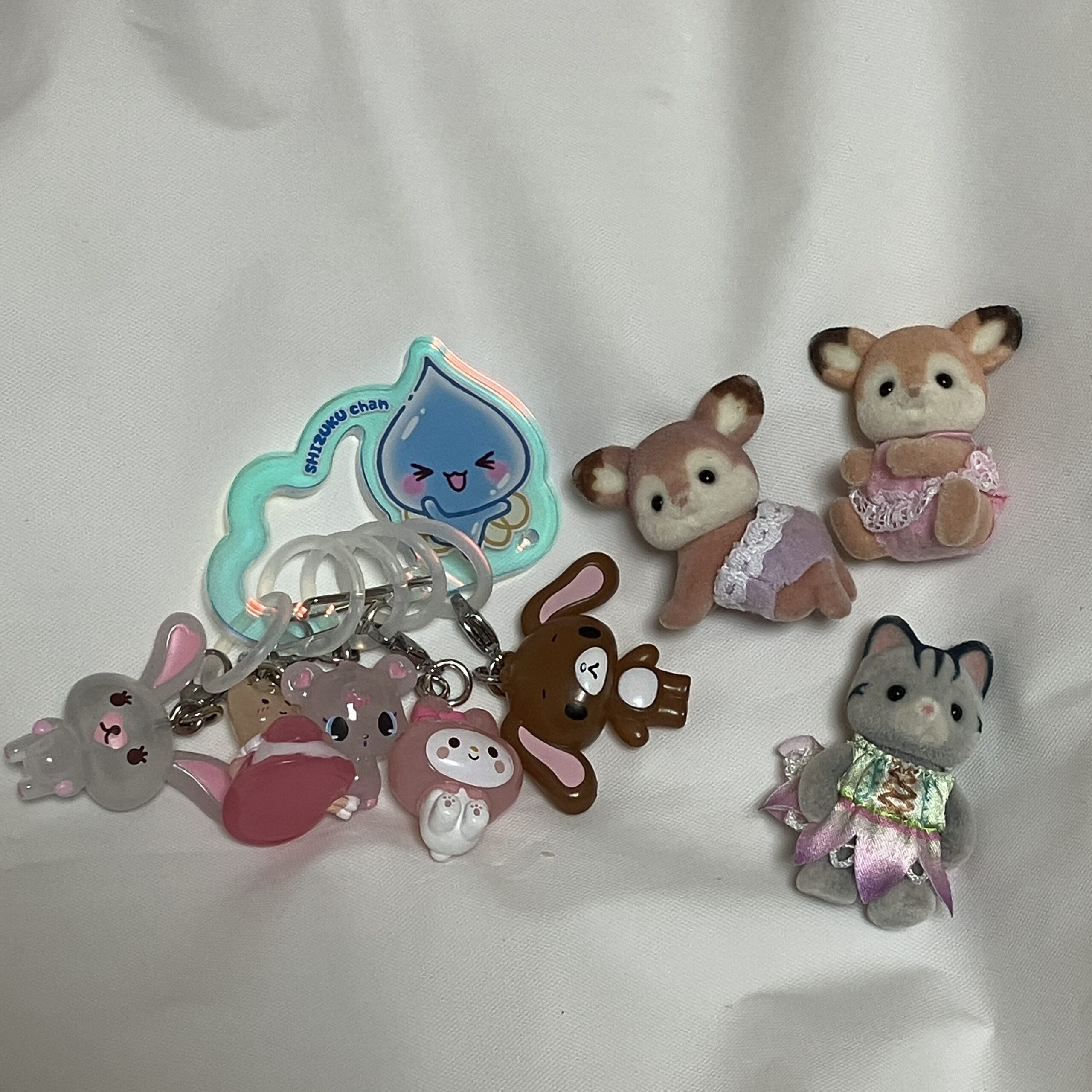 ガチャガチャポーチの中にはお気に入りのガチャガチャ(めじるしアクセサリー)とシルバニアとかを入れてる!チェゴシムのポーチはセリアで買いました♡
