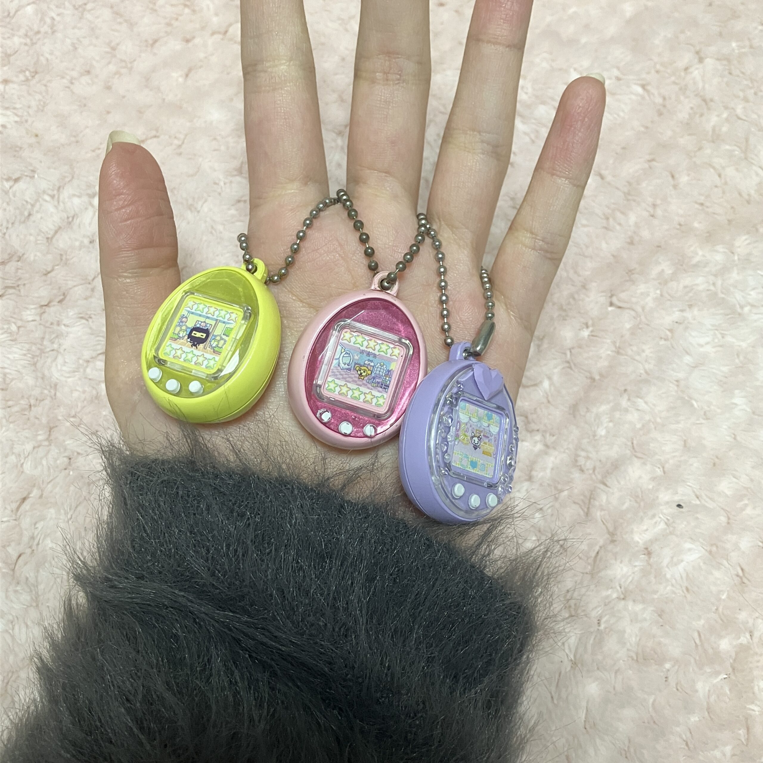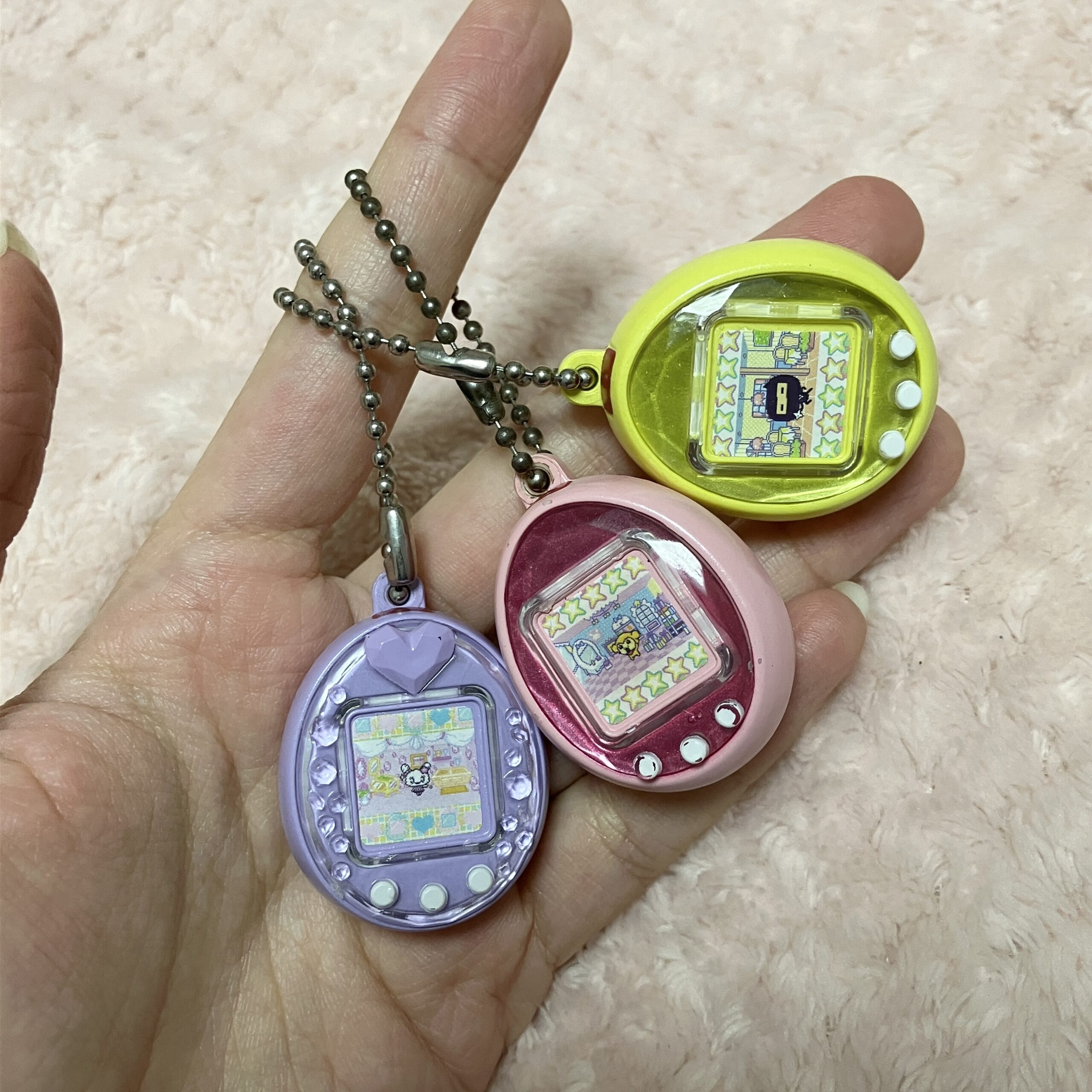 真ん中のピンクのたまごっちID小さい頃使ってて、まんま小さくなってて感動した🥹🫶🏻💕