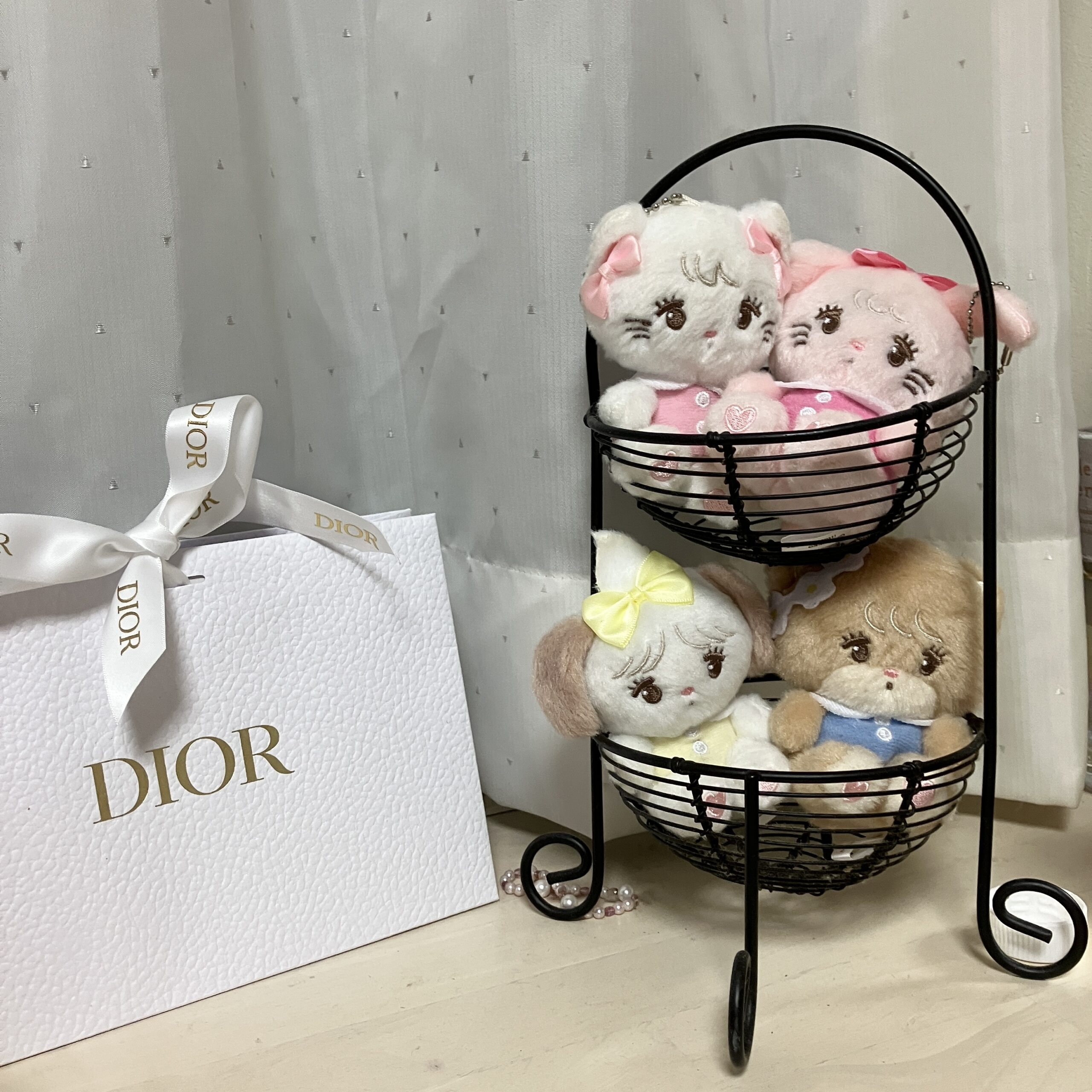 mikkoのぬいぐるみはこんな感じで展示?収納?してます🎀入れてみたらジャストサイズで超かわいかったの🥺🤍