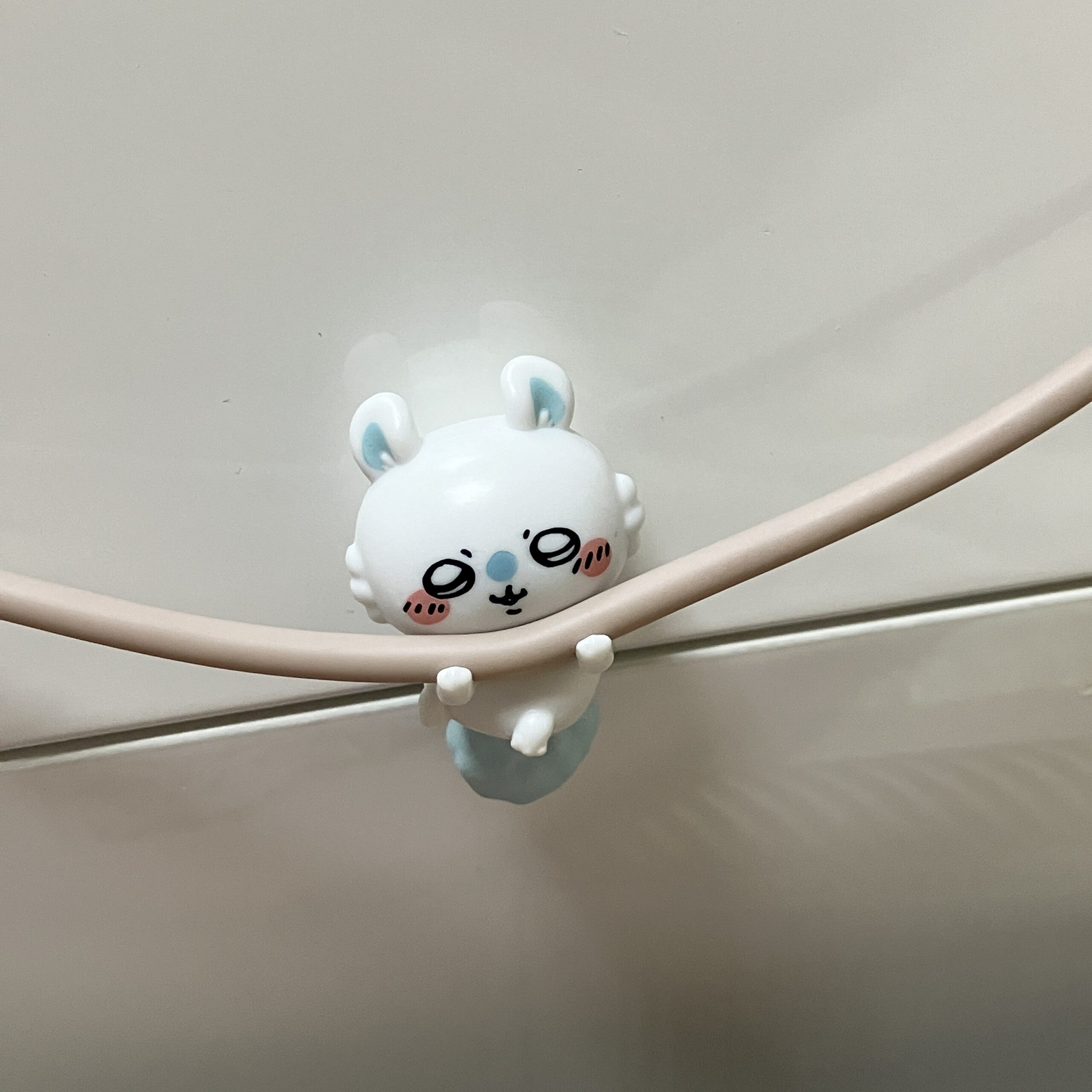 充電コードを支えてくれるちいかわのガチャガチャ!!🥹確かちいかわ狙いだったけどモモンガでした🎀頑張って支えてくれてて愛おしい🥺🥺