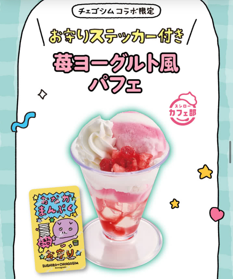 いちごパフェ注文で貰えるのは、チェゴシムといえばのお守りステッカー!
