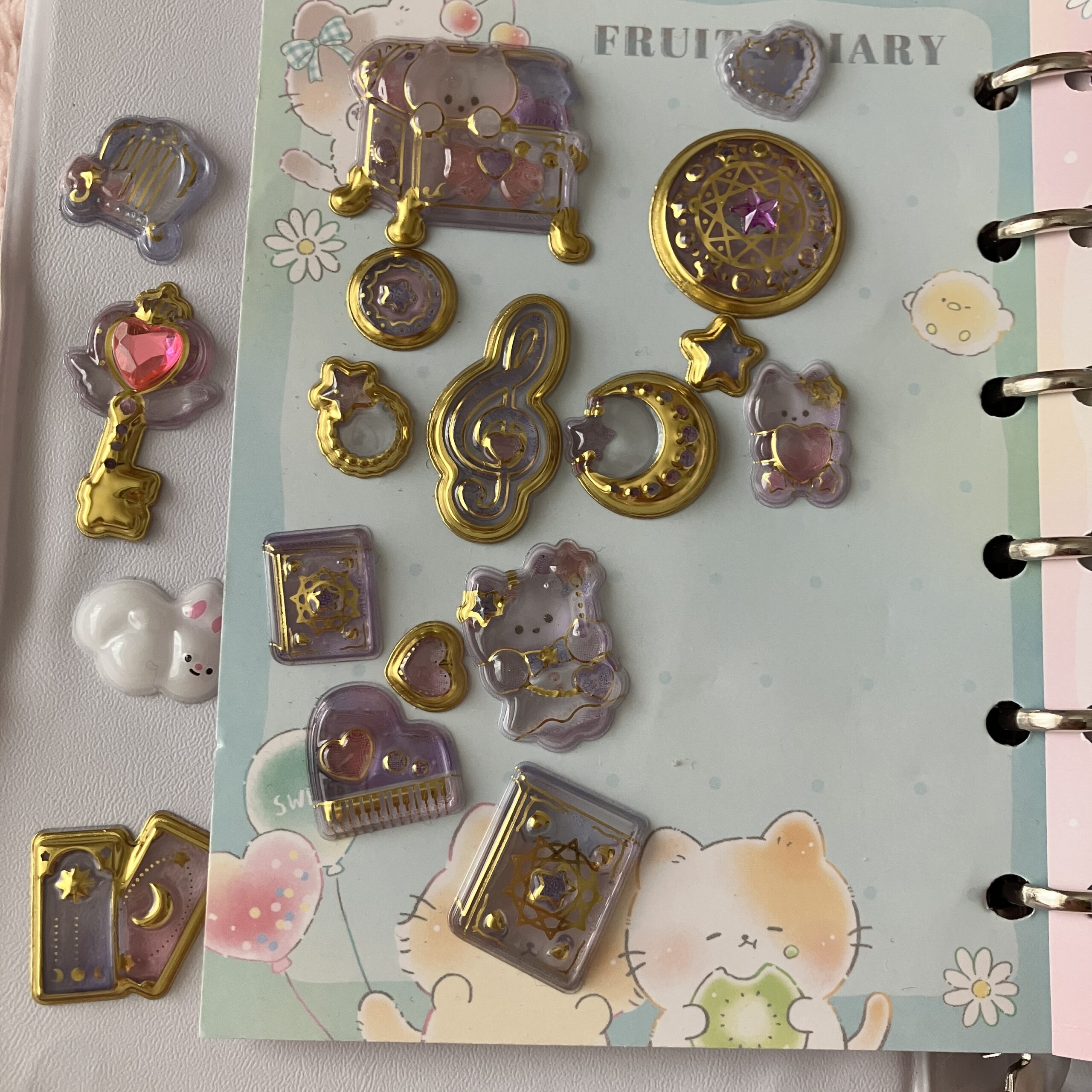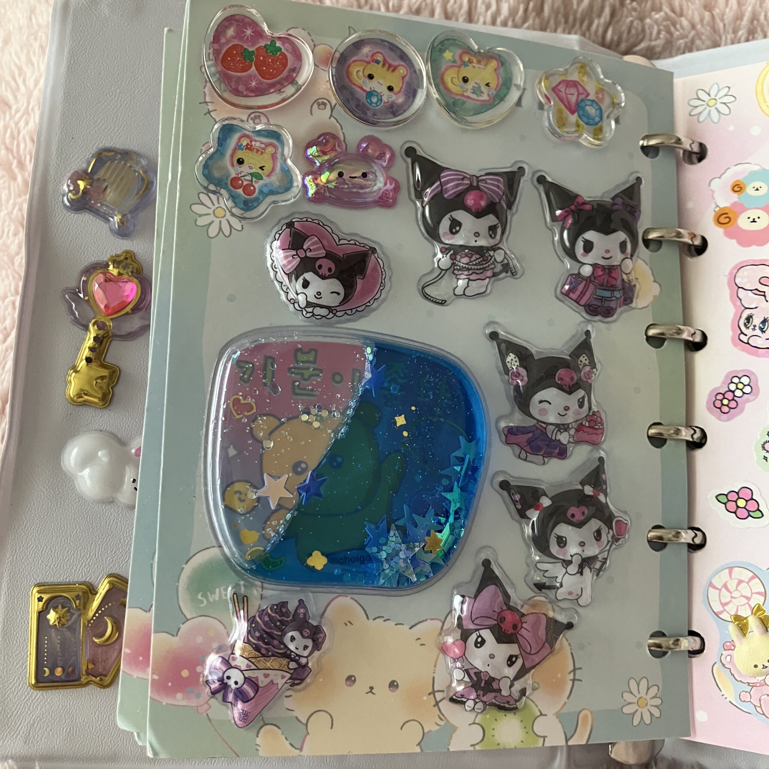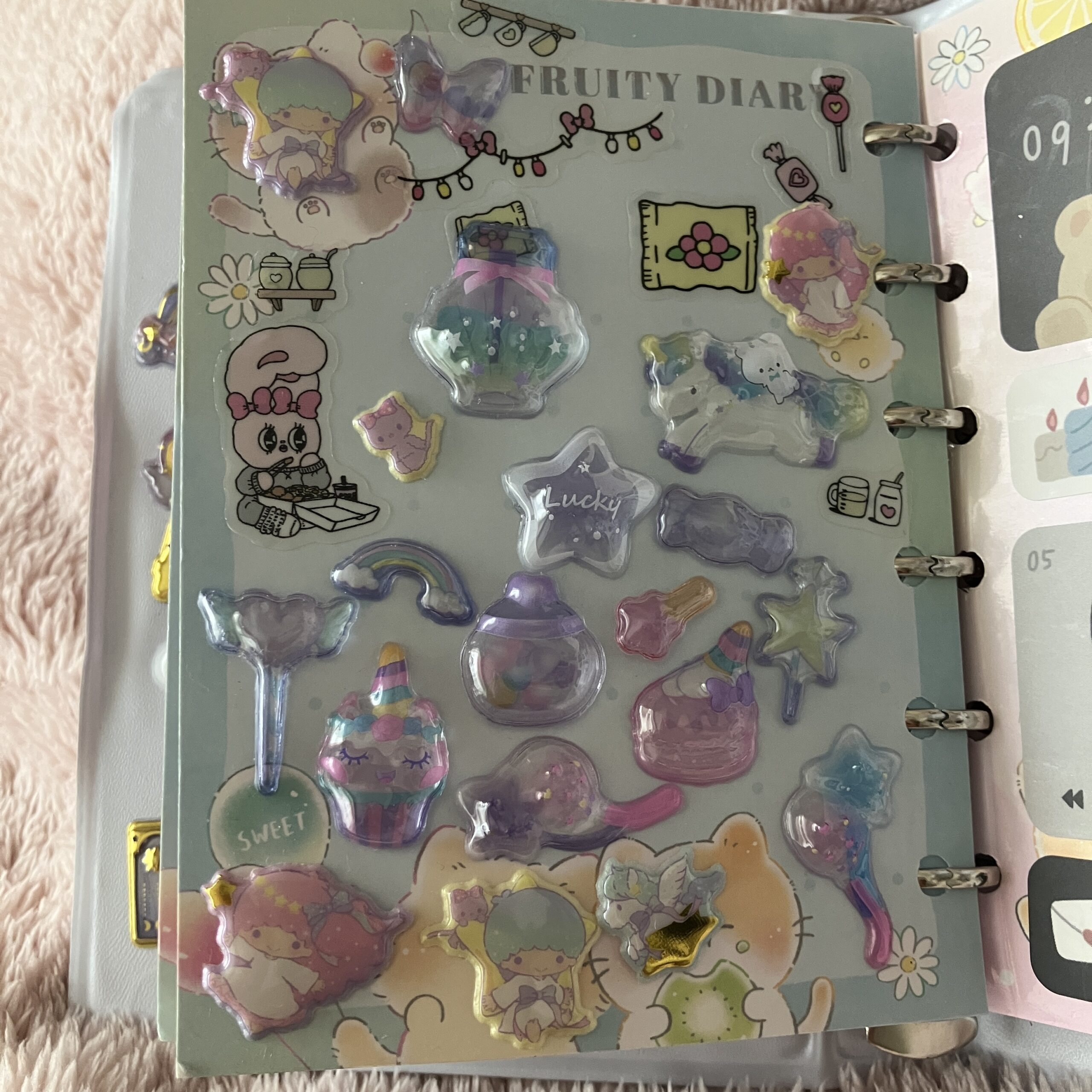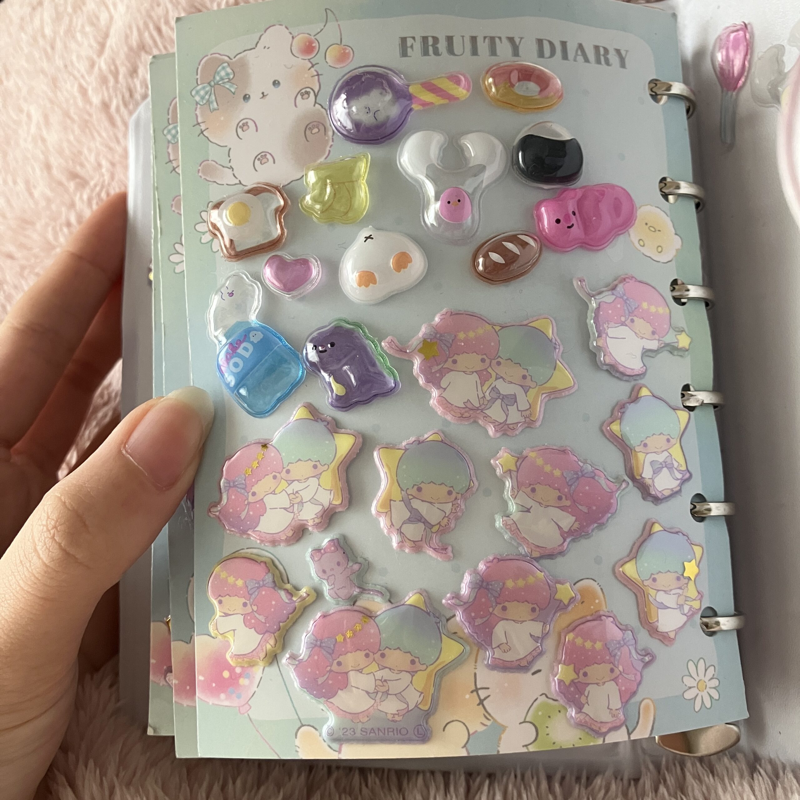 余りの立体シールとキキララぷっくりシール🎀最後のページだから用紙曲がりすぎて剥がれないようにくっつけるの大変、、!立体シールだととくに剥がれやすい😣