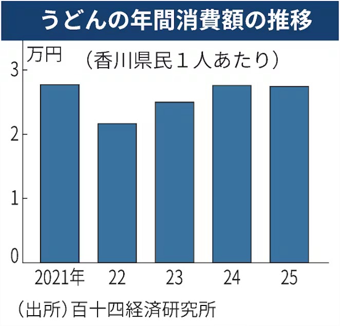 “うどん県”香川で、2024年の うどん消費額が前年比で減少。