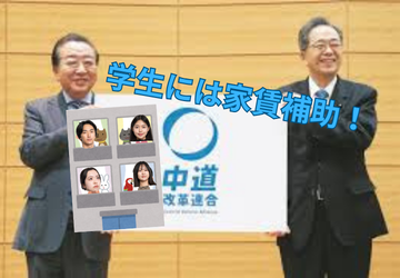 中道?改革連合が 若者・学生向けに家賃補助や住宅提供を掲げたんだって。