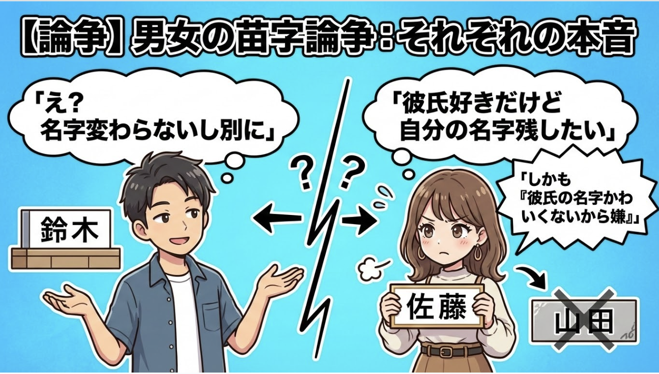 ・女の子 → 「彼氏好きだけど自分の名字残したい」