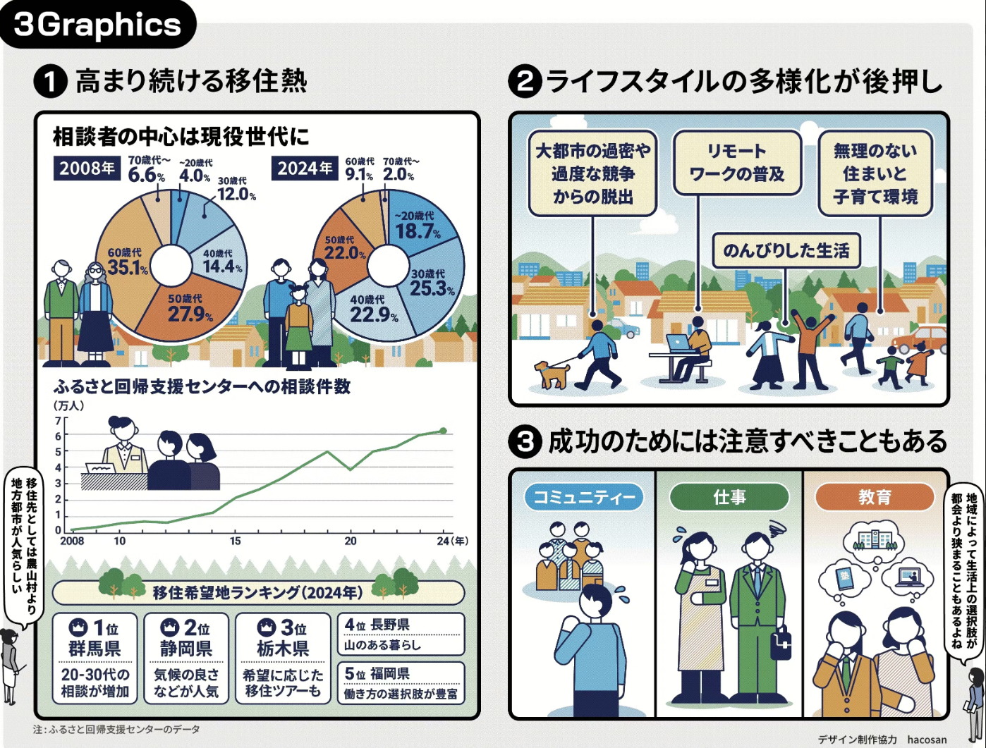しかも、相談者の約7割が40代以下の現役世代。昔はおじいちゃんのセカンドライフってイメージだったけど、今はうちら世代が「自分らしい生き方」を探して地方に目を向けてるってワケ!