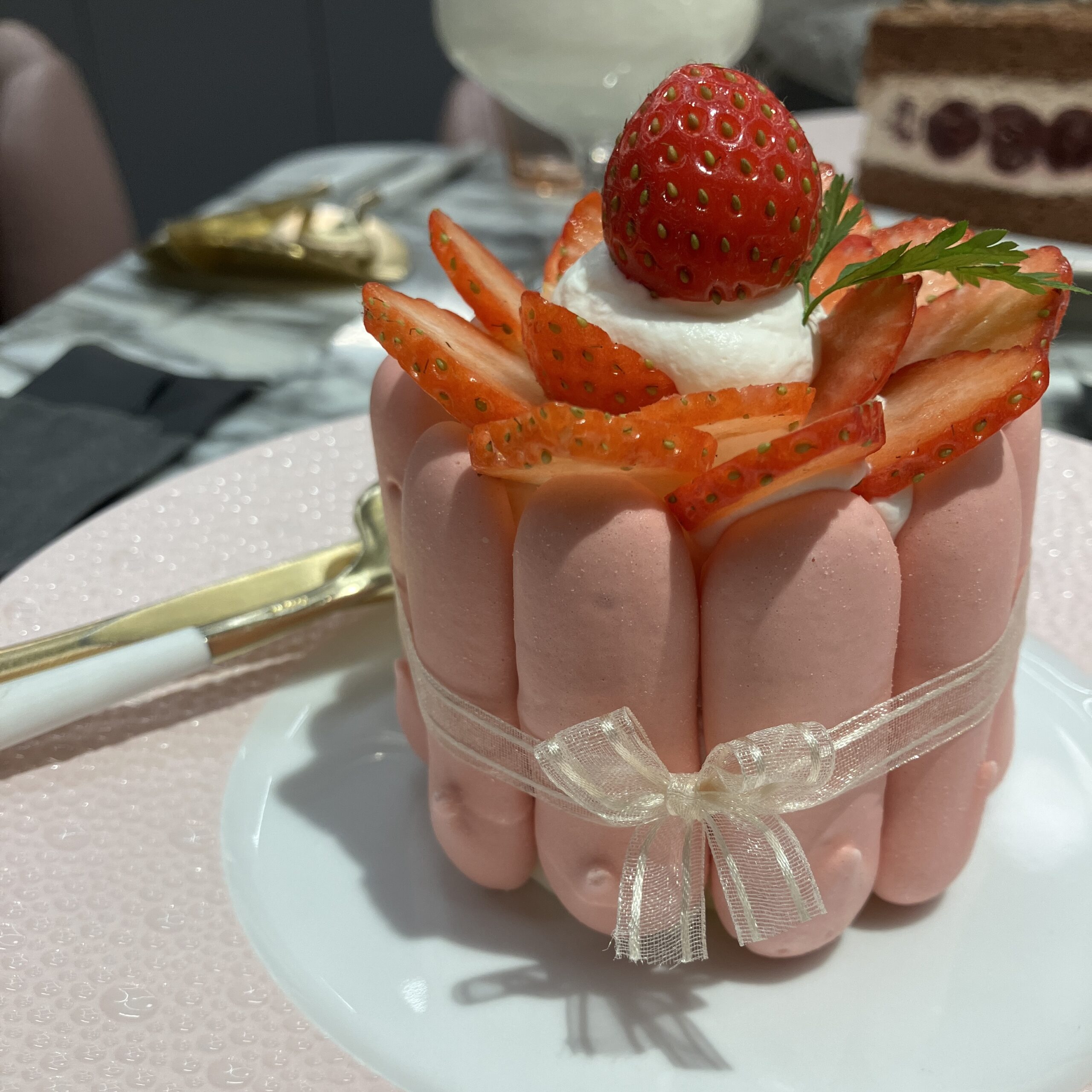 お値段は1200円!ピンクのとこはメレンゲクッキーになってて内側はショートケーキぽい感じ🎶生クリームとメレンゲクッキー一緒に食べると超おいしい🤤♡♡