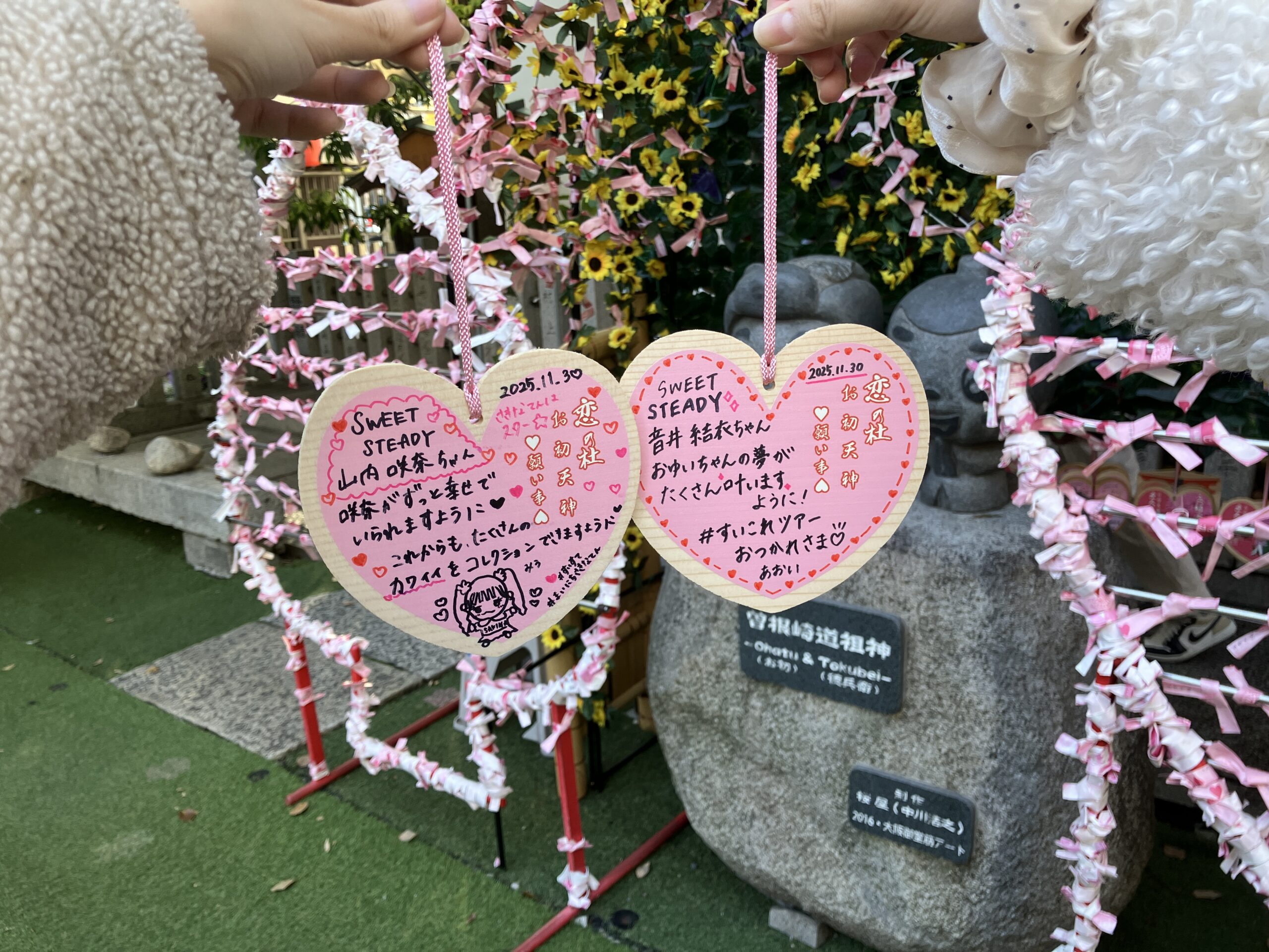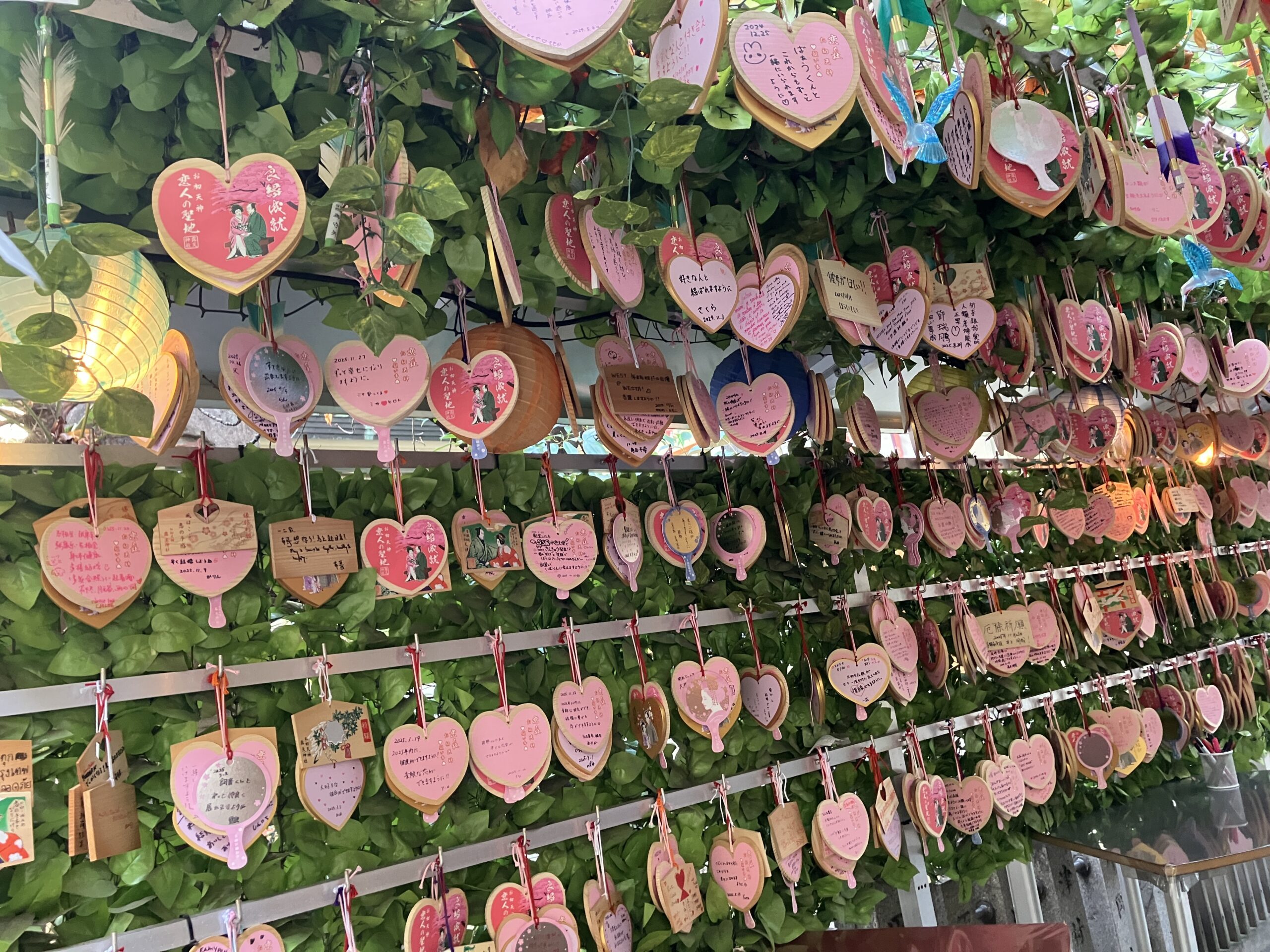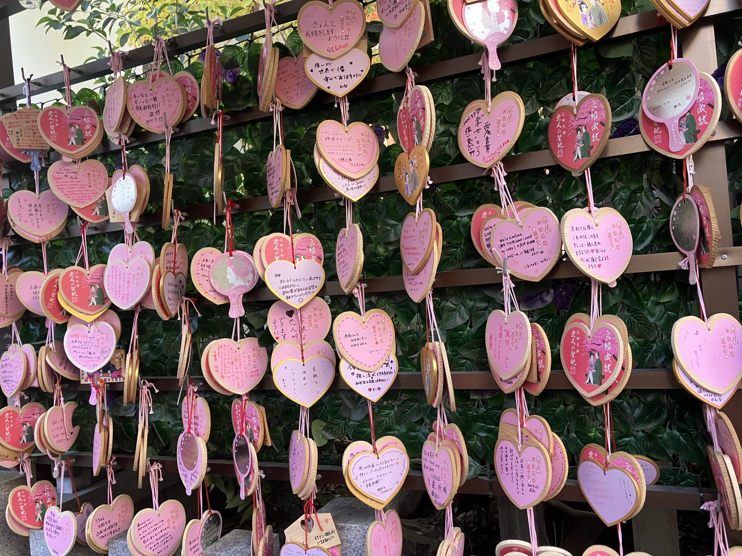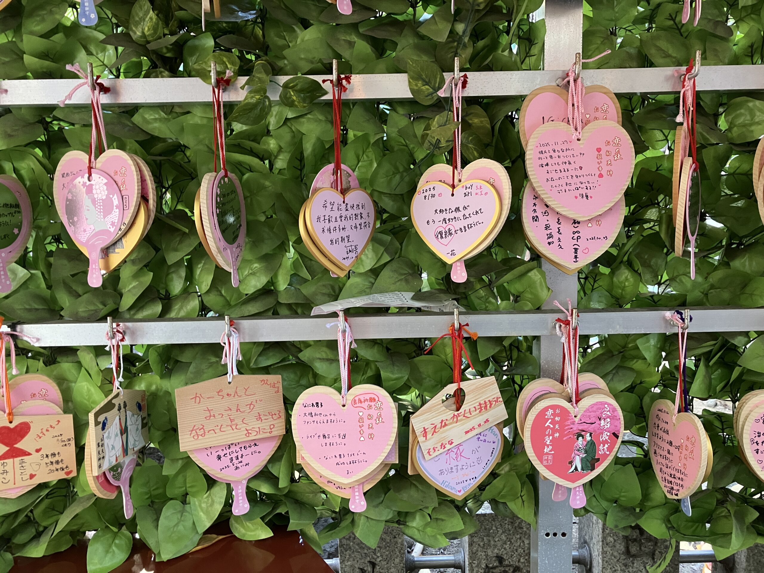 この神社はハートの絵馬が有名で、推し活で訪れる人がたくさん^_-♡”